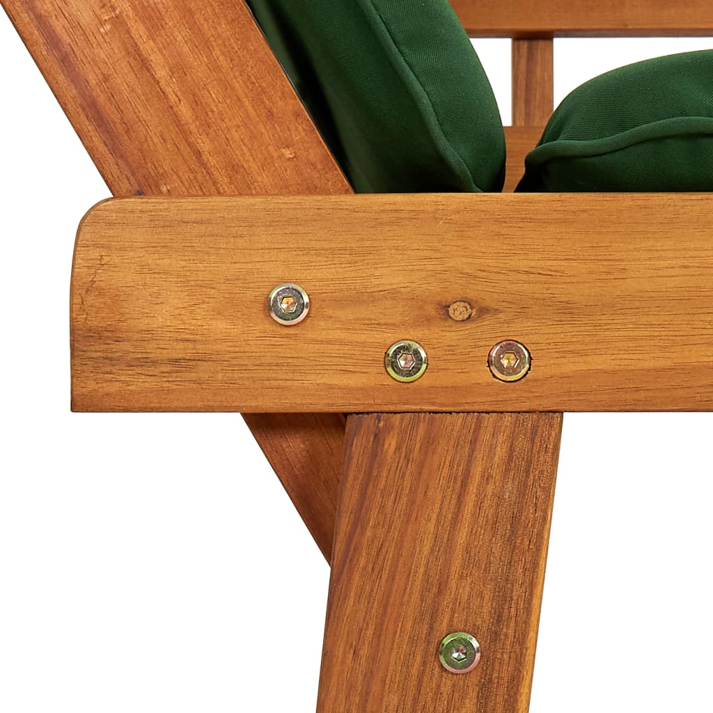 Diese Sonnenliege/Gartenbank aus Holz kombiniert Stil und Funktionalität und wird der Mittelpunkt Ihres Gartens oder Ihrer Terrasse sein. Die Sonnenliege lässt sich dank der verstellbaren Seitenteile schnell und einfach von einer Bank zu einer Liege und wieder zurück umbauen. Die dicken, abnehmbaren Rücken- und Sitzkissen sorgen für höchsten Sitz- und Liegekomfort. Die Kissenbezüge können leicht abgenommen und gewaschen werden. Die Gartenbank besteht aus Akazienholz, einem Hartholz mit dichter Maserung. Sie ist daher wetterbeständig und für den Außenbereich geeignet.