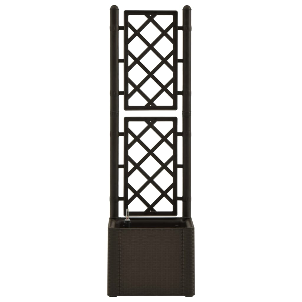 Schaffen Sie einen schönen Hingucker mit diesem eleganten, funktionalen und einzigartigen selbstbewässernden Hochbeet! Dieser Spalier-Pflanzkübel hat einen großen Blumenkasten, der eine große Anzahl grüner Pflanzen und Blumen aufnehmen kann. Das eingebaute Spalier bietet eine hervorragende Stütze für Kletterpflanzen wie Kräuter, Tomaten, Bohnen usw. Es besteht aus robustem UV-, wetter- und frostbeständigem Kunststoff und ist für den Innen- und Außenbereich geeignet. Das Design ähnelt einer täuschend realen Rattanstruktur. Das Material ist waschbar und leicht zu reinigen. Darüber hinaus kann diese Box Pflanzen automatisch gießen, indem sie Feuchtigkeit aus ihrem 35-l-Wasserreservoir ableitet, und verfügt über Wasserüberlauflöcher, um ein Überwässern zu verhindern. Die Füllstandsanzeige ist enthalten.