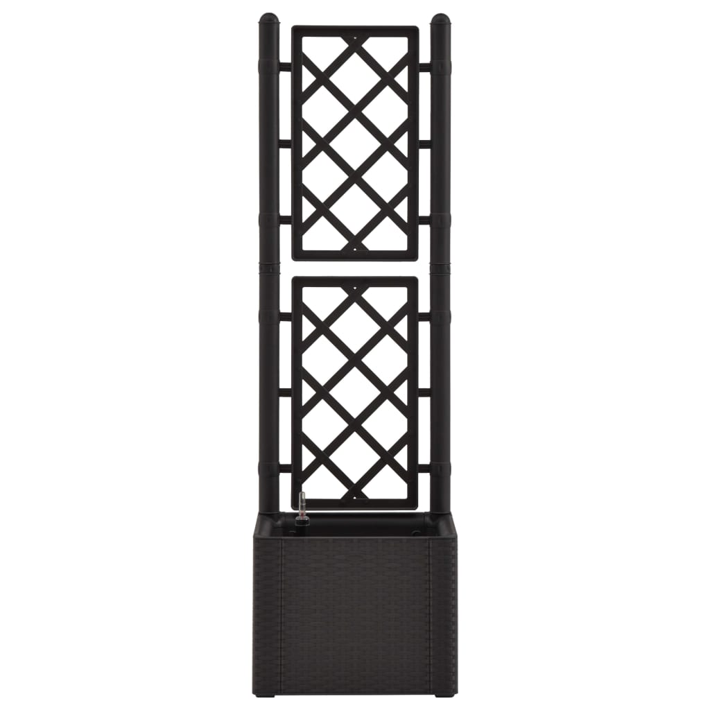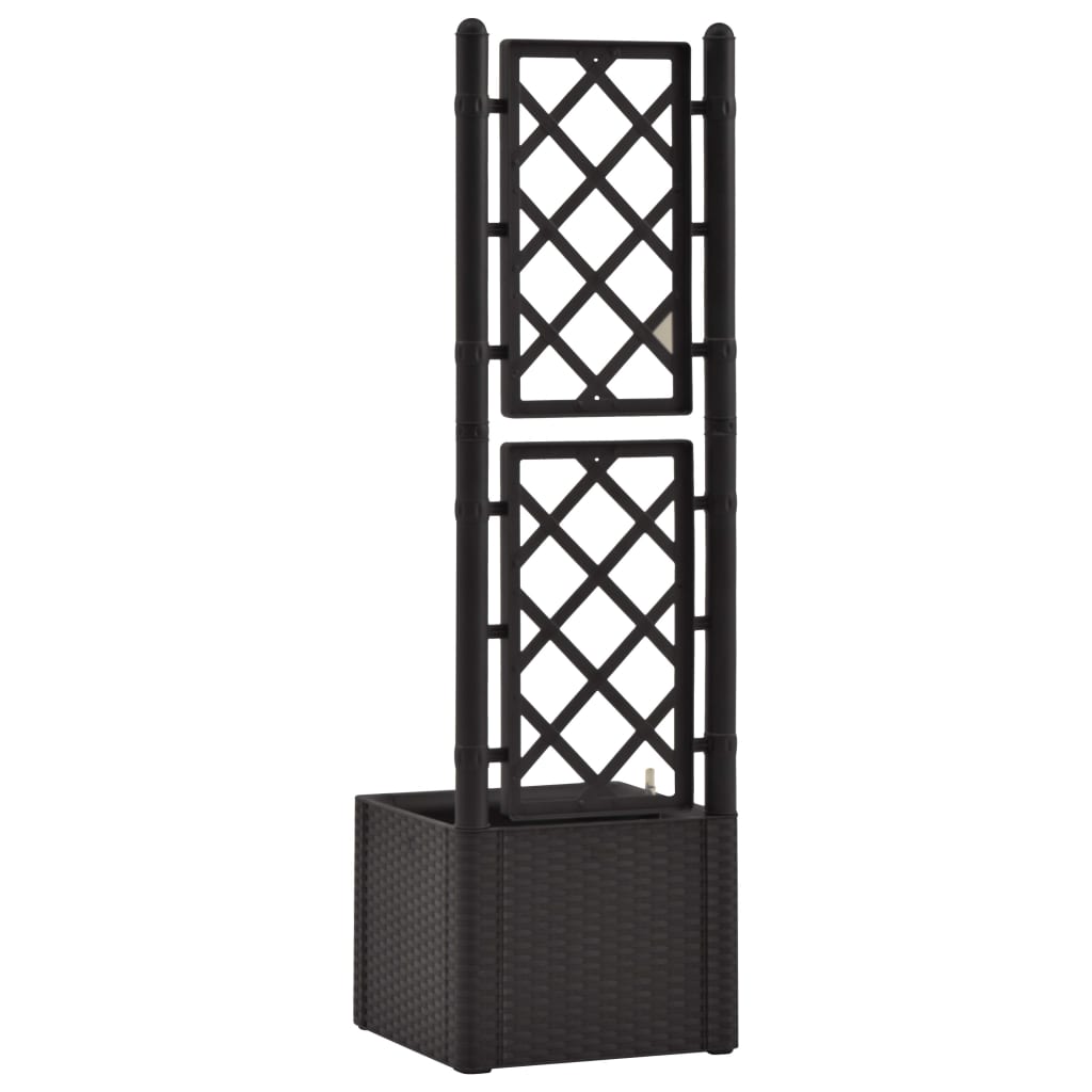 Schaffen Sie einen schönen Hingucker mit diesem eleganten, funktionalen und einzigartigen selbstbewässernden Hochbeet! Dieser Spalier-Pflanzkübel hat einen großen Blumenkasten, der eine große Anzahl grüner Pflanzen und Blumen aufnehmen kann. Das eingebaute Spalier bietet eine hervorragende Stütze für Kletterpflanzen wie Kräuter, Tomaten, Bohnen usw. Es besteht aus robustem UV-, wetter- und frostbeständigem Kunststoff und ist für den Innen- und Außenbereich geeignet. Das Design ähnelt einer täuschend realen Rattanstruktur. Das Material ist waschbar und leicht zu reinigen. Darüber hinaus kann diese Box Pflanzen automatisch gießen, indem sie Feuchtigkeit aus ihrem 35-l-Wasserreservoir ableitet, und verfügt über Wasserüberlauflöcher, um ein Überwässern zu verhindern. Die Füllstandsanzeige ist enthalten.