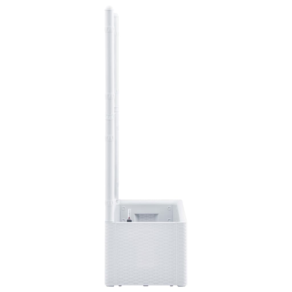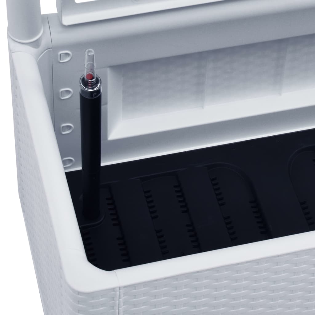 Schaffen Sie einen schönen Hingucker mit diesem eleganten, funktionalen und einzigartigen selbstbewässernden Hochbeet! Dieser Spalier-Pflanzkübel hat einen großen Blumenkasten, der eine große Anzahl grüner Pflanzen und Blumen aufnehmen kann. Das eingebaute Spalier bietet eine hervorragende Stütze für Kletterpflanzen wie Kräuter, Tomaten, Bohnen usw. Es besteht aus robustem UV-, wetter- und frostbeständigem Kunststoff und ist für den Innen- und Außenbereich geeignet. Das Design ähnelt einer täuschend realen Rattanstruktur. Das Material ist waschbar und leicht zu reinigen. Darüber hinaus kann diese Box Pflanzen automatisch gießen, indem sie Feuchtigkeit aus ihrem 90-l-Wasserreservoir ableitet, und verfügt über Wasserüberlauflöcher, um ein Überwässern zu verhindern. Die Füllstandsanzeige ist enthalten.