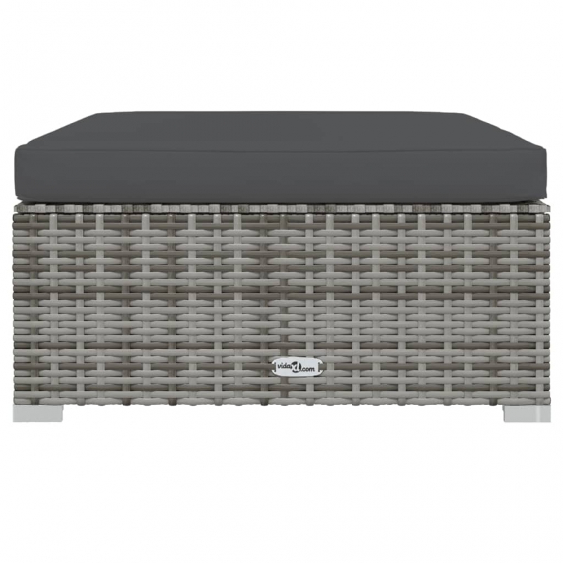 Garten-Fußhocker mit Kissen Grau 70x70x30 cm Poly Rattan