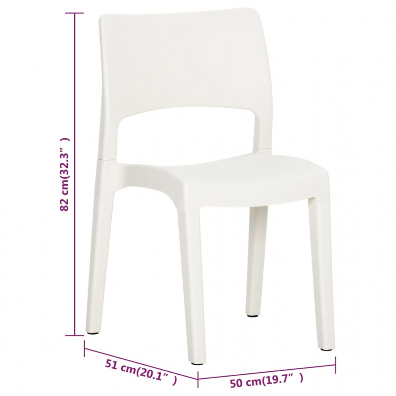 Werten Sie Ihren Essbereich mit diesen trendigen Gartenstühlen auf! Sie verleihen Ihrem Außenbereich sowohl eleganten als auch modernen Charme. Erstklassiges Material: Diese Terrassenstühle bestehen aus Polypropylen, das nicht bricht oder abplatzt und sogar lichtbeständig ist, wodurch sie sich leicht reinigen lassen und eine lange Lebensdauer im Außenbereich gewährleisten.Modernes Design: Verleihen Sie Ihrem Interieur eine moderne Note! Durch klare Linien und minimalistischen Look fügen sich diese modernen Stühle harmonisch in Ihre Inneneinrichtung ein.Einfache Lagerung: Diese Gartenstühle lassen sich aufeinander stapeln, um bei Nichtgebrauch Platz zu sparen.Leichtbauweise: Dank ihrer Leichtbauweise können die Campingstühle einfach umgestellt werden. Hinweis:Um die Lebensdauer deiner Gartenmöbel zu verlängern, empfehlen wir dir, sie mit einer wasserdichten Hülle zu schützen.