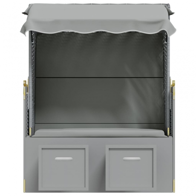 Strandkorb mit Dach Poly Rattan und Massivholz Grau
