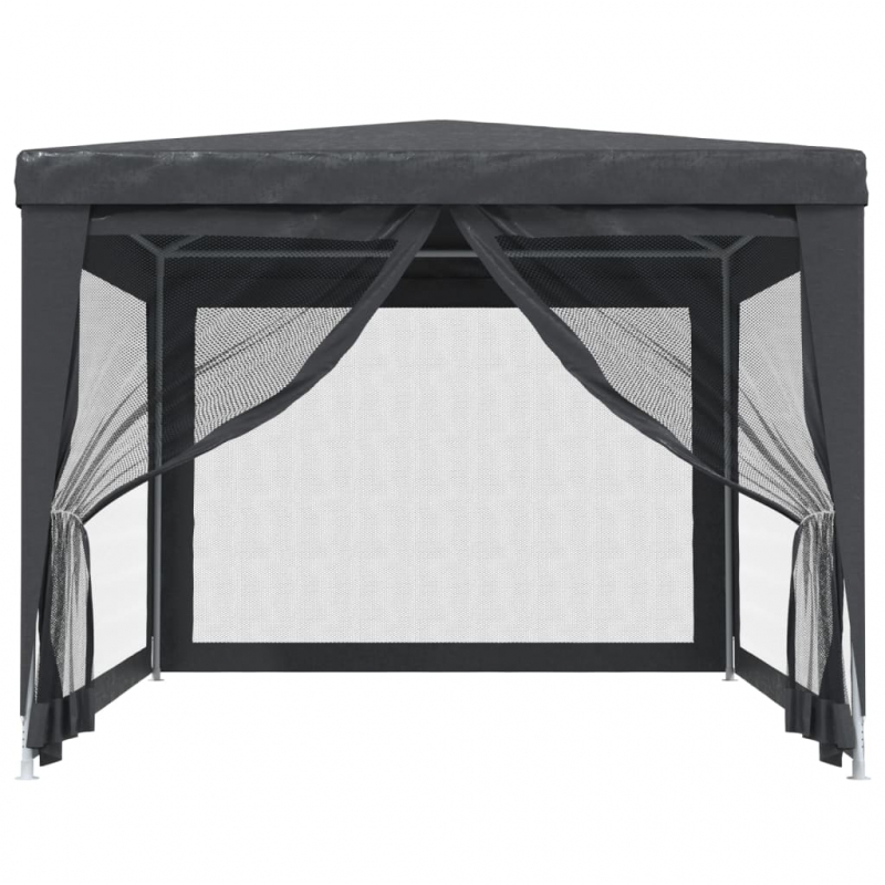 Mit seinem robusten Eisenrahmen, dem wasserfesten Dach und den vier Mesh-Seitenwänden bietet dieses tolle Partyzelt den idealen Schutz vor der Sonne. Erstklassiges Material: Dieser Pavillon besteht aus Polyethylen hoher Dichte (HDPE), das dich vor direkter Sonneneinstrahlung schützt und eine ausreichende Belüftung ermöglicht. Das HDPE wurde speziell behandelt, sodass es auch wasserfest ist.Eisenrahmen: Der Eisenrahmen sorgt für Robustheit und Stabilität.Praktisches Design: Das Partyzelt ist mit vier Mesh-Seitenwänden versehen, um Schutz vor lästigen Insekten zu bieten. Eine Seitenwand ist mit Reißverschluss versehen, um einen einfachen Zugang zu ermöglichen.Breite Anwendung: Dieses Partyzelt ist eine ideale Wahl für eine Vielzahl von Veranstaltungen im Freien wie Shows, Hochzeiten, Partys, Grillpartys, Festivals usw. Hinweis:Dieses Produkt sollte NIEMALS bei schlechtem Wetter wie starkem Wind, starkem Regen, Schnee, Sturm usw. verwendet werden.Jedes Produkt wird mit einer Montageanleitung in der Verpackung für eine einfache Montage geliefert.
