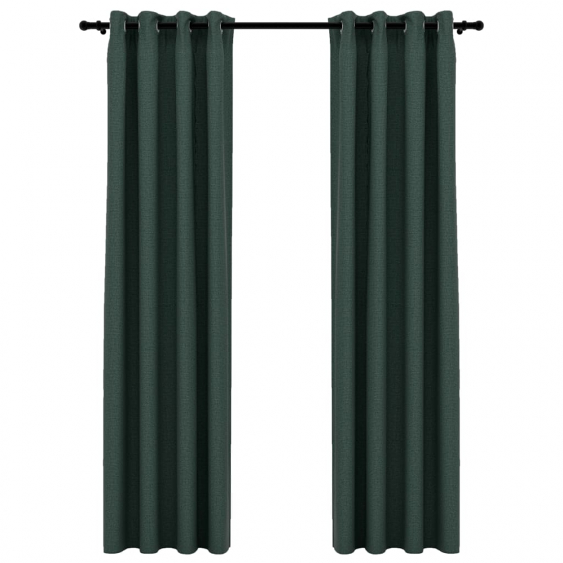 Verdunkelungsvorhänge Ösen Leinenoptik 2 Stk. Grün 140x225 cm