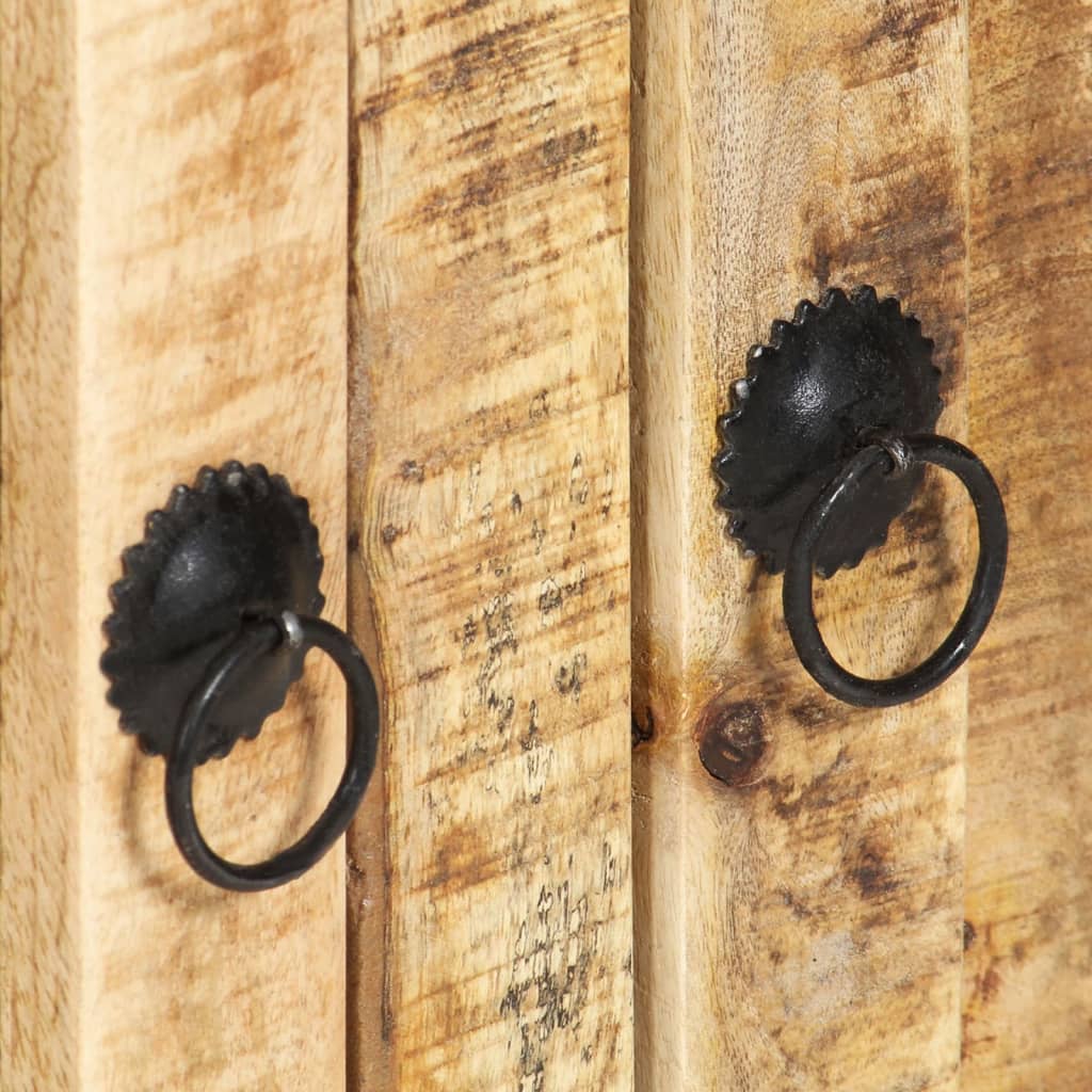 Wenn Sie auf der Suche nach einem industriellen Charme für Ihre Inneneinrichtung sind, ist dieses Holz-Sideboard genau das Richtige für Sie. Dieser Aufbewahrungsschrank besteht aus massivem Mangoholz, einem tropischen Hartholz, das sehr belastbar ist und auch dem Verschleiß der Zeit standhält. Zusätzlich machen die exquisite Handwerkskunst und die schönen Holzmaserungen jedes Stück zu einem Unikat. Der pulverbeschichtete Stahlrahmen trägt zu der stabilen und stabilen Struktur bei. Der Holzschrank verfügt über 2 Fächer mit Türen und 4 Schubladen zur Aufbewahrung verschiedener Gegenstände. Wichtiger Hinweis: Die Farben variieren von Möbelstück zu Möbelstück, somit ist jedes ein Unikat. Die Lieferung erfolgt nach dem Zufallsprinzip.