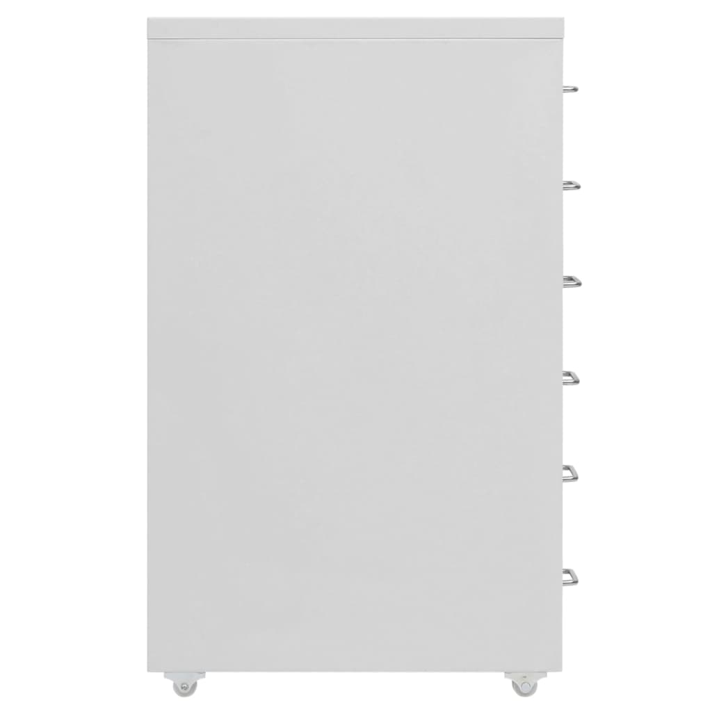 Dieser Büroschrank mit typischem Aktenschrank-Design eignet sich ideal zur Aktenaufbewahrung. Dieser Büroschrank ist aus Metall gefertigt, wodurch er langlebig und pflegeleicht ist. Der Aktenschrank verfügt über 6 Schubladen und Sie können Namensschilder in die Metallgriffe stecken, um Ihre Akten übersichtlich in verschiedene Kategorien einzusortieren. Mit 4 Rollen ausgestattet, lässt sich der Schrank auch leicht umher verschieben. Dank seines ikonischen Designs passt er zu jeder Büroeinrichtung. Zudem lässt sich der Schrank mit einem feuchten Tuch leicht reinigen.