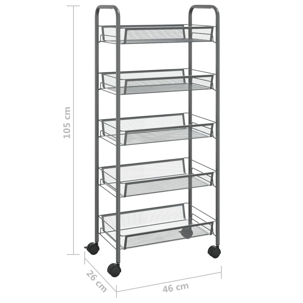 Küchenwagen 5 Etagen Grau 46x26x105 cm Eisen