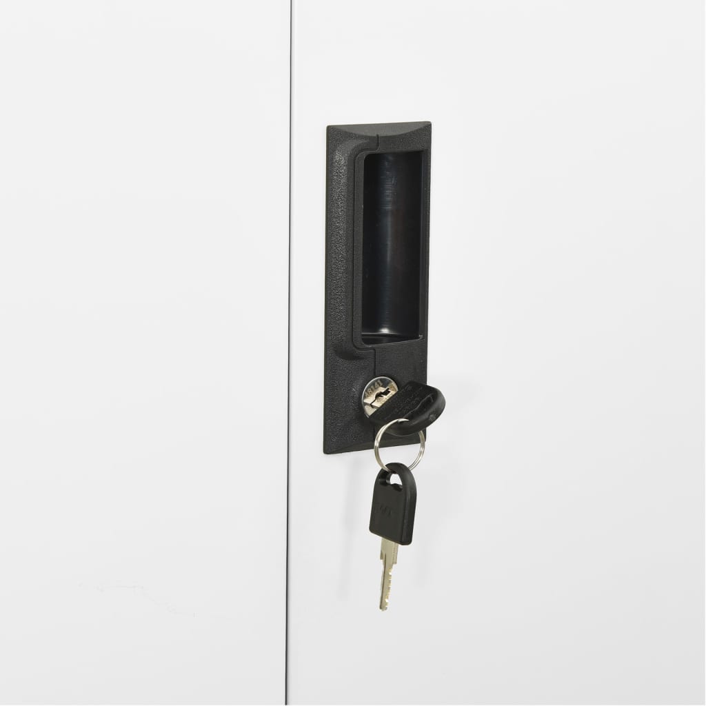 Dieser Büroschrank mit typischem Aktenschrank-Design eignet sich ideal zur Aktenaufbewahrung. Dieser Büroschrank ist aus Stahl gefertigt, wodurch er sowohl langlebig als auch leicht zu reinigen ist. Mit einem Schließfach im Inneren und 3 verstellbaren Einlegeböden ermöglicht Ihnen dieser Aktenschrank, Ihre Akten ordentlich in verschiedene Kategorien zu sortieren und Akten sicher aufzubewahren. Die Schubladen mit 3-teiligen kugelgelagerten Führungen sorgen für ein reibungsloses Öffnen und Schließen, auch bei erhöhter Belastung. Dank seines kultigen Designs passt dieser Schrank zu jeder Büroeinrichtung.