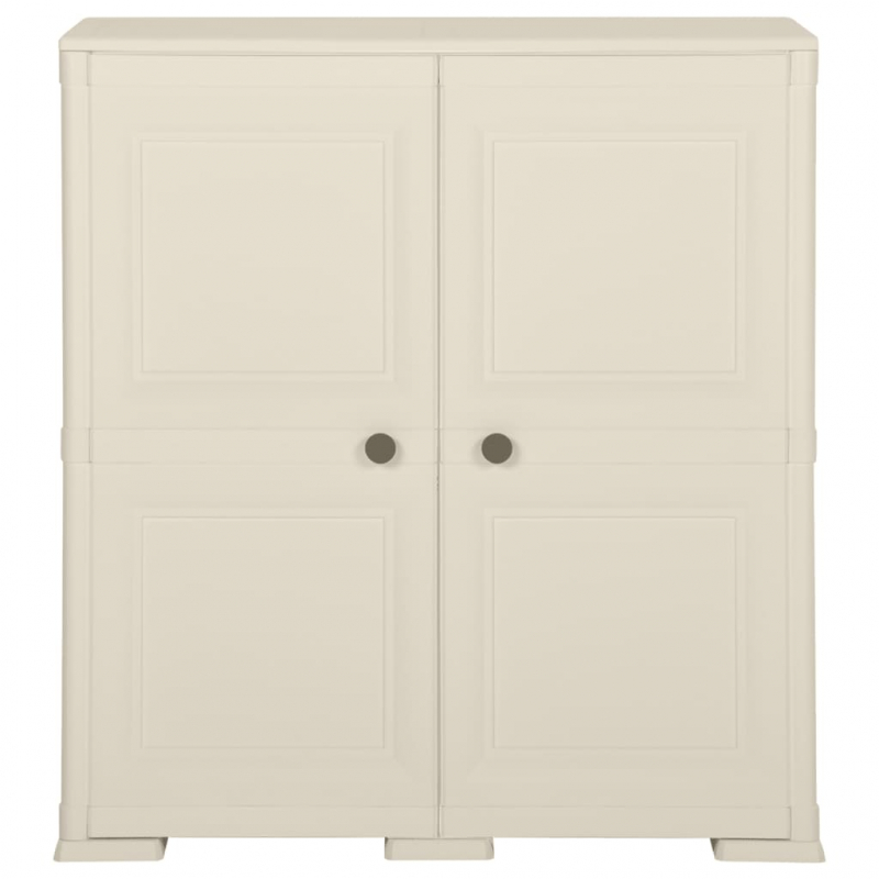 Mit diesem Schrank sorgen Sie für Ordnung in Ihrem Zuhause. Er ist eine ideale Wahl für den Einsatz zu Hause, im Büro und im Lagerraum. Dieser Aufbewahrungsschrank ist aus Kunststoff gefertigt und daher leicht zu reinigen. Der Schrank bietet reichlich Stauraum, um Ihre wichtigsten Gegenstände ordentlich und griffbereit aufzubewahren. Der Schrank weist ein kompaktes Design auf und nutzt daher begrenzten Platz optimal aus.