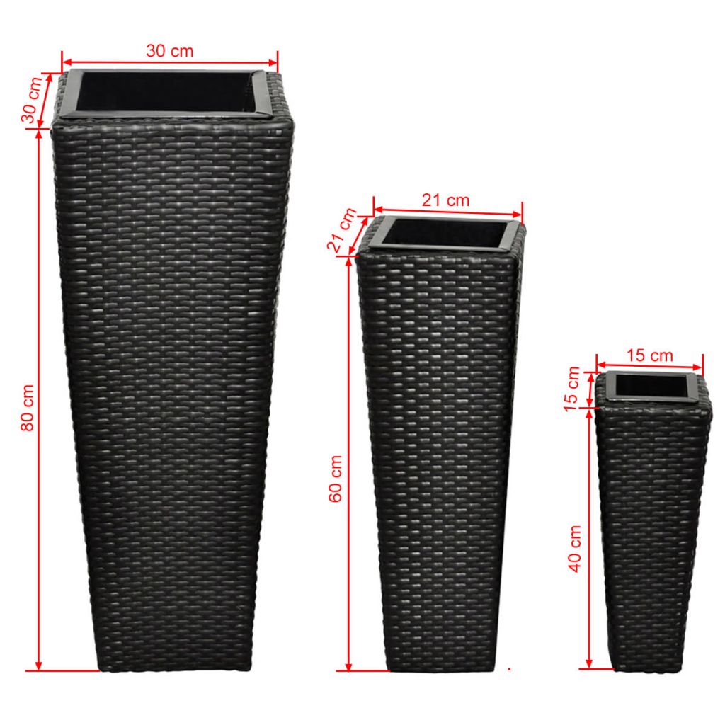 Garten-Hochbeet 3-tlg. Poly Rattan Schwarz