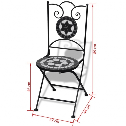 Dieses Set aus Mosaikstühlen ist eine dekorative Ergänzung für deinen Garten, deine Terrasse oder deinen Balkon. Es wird ein Vergnügen sein, mit Freunden auf diesen Stühlen eine Tasse Kaffee zu trinken. Dank des starken pulverbeschichteten Eisenrahmens ist dieses Möbel-Set robust und langlebig. Dank der wasserdichten Keramik-Sitzflächen sind diese Stühle leicht zu reinigen. Lieferung beinhaltet 2 Stühle. Bitte beachten: diese Stühle sind nicht geeignet, um bei Kälte draußen zu stehen.