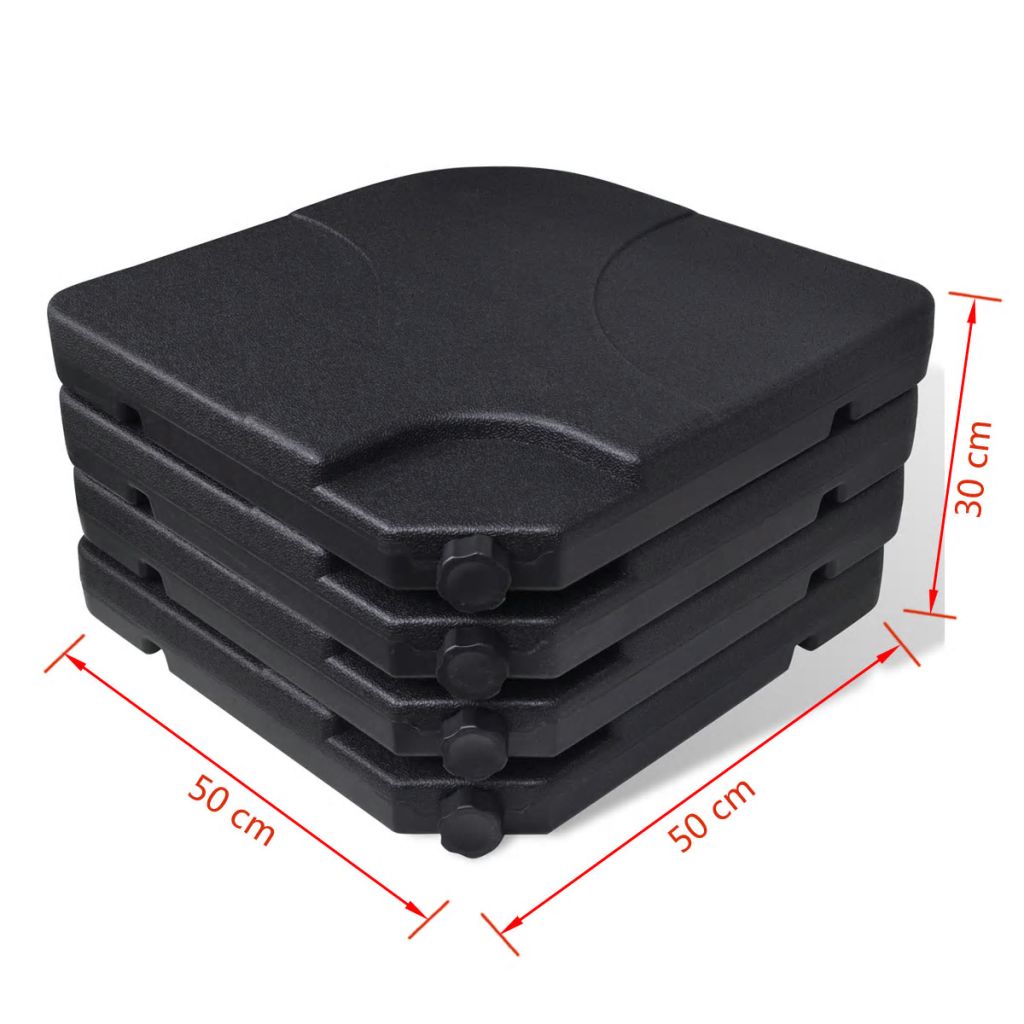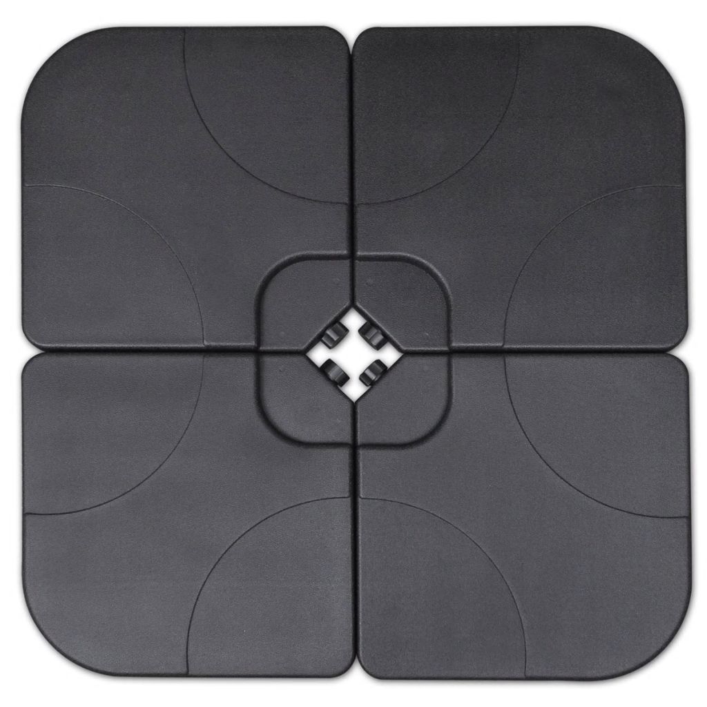 Dieser Schirmständer besteht aus vier separaten Teilen, die mit Wasser oder Sand gefüllt werden können. Er dient als fester und stabiler Standfuß für deinen Sonnenschirm. Der Sonnenschirmständer kann mit 60 Litern Wasser oder 80 kg Sand befüllt werden. Er ist ideal, um Sonnenschirme mit einem Kreuzfuß zu stabilisieren. Ohne das Wasser oder den Sand als Gewicht, ist der Sonnenschirmständer sehr leicht, so dass er am Griff einfach zu tragen und mitzunehmen ist. Mit diesem Sonnenschirmständer bleibt dein Sonnenschirm an Ort und Stelle!