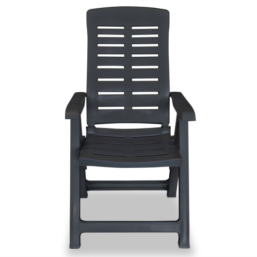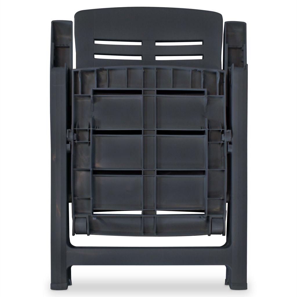 Diese witterungsunempfindlichen Gartenstühle sind eine tolle Ergänzung für Ihren Hof oder Garten. Sie laden nicht nur zu geselligen Gesprächen ein, sondern lassen Sie auch das Wetter im Freien genießen. Die verstellbaren Stühle sind aus langlebigem Kunststoff gefertigt. Somit sind sie nicht nur unempfindlich gegen Witterungseinflüsse, sondern auch leicht zu reinigen. Die Rückenlehne lässt sich in 4 Positionen neigen, sodass Sie stets eine bequeme Sitzposition einnehmen können. Dank geringem Eigengewicht lassen sich die Gartenstühle einfach umher bewegen. Und sind sie einmal nicht in Gebrauch, können sie platzsparend zusammengeklappt werden. Die Lieferung umfasst 2 Stühle.