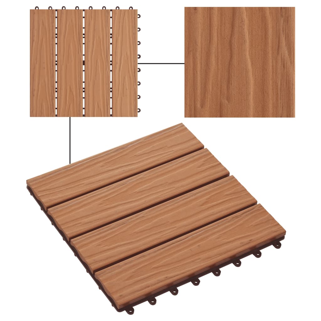 Terrassenfliesen 11Stk. Tief Geprägt WPC 30x30cm 1 qm Teakfarbe
