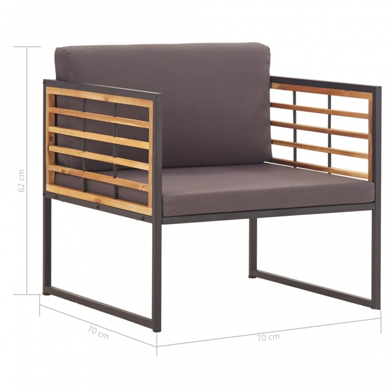 Diese Gartenstühle aus Akazienholz weisen ein klassisches Design auf und stellen eine hervorragende Bereicherung für Ihren Außenbereich dar. Die Sofastühle mit Armlehnen bestehen aus massivem Akazienholz mit Öl-Finish und sind daher witterungsbeständig und sehr langlebig. Der pulverbeschichtete Stahlrahmen sorgt für hohe Stabilität, während die mitgelieferten, dick gepolsterten Sitz- und Rückenkissen Ihnen zusätzlichen Komfort beim Entspannen bieten. Die Stühle lassen sich mit einem feuchten Tuch einfach reinigen. Unsere Stühle sind einfach zu montieren. Die Lieferung umfasst 2 Gartenstühle, 2 Rückenkissen und 2 Sitzkissen.