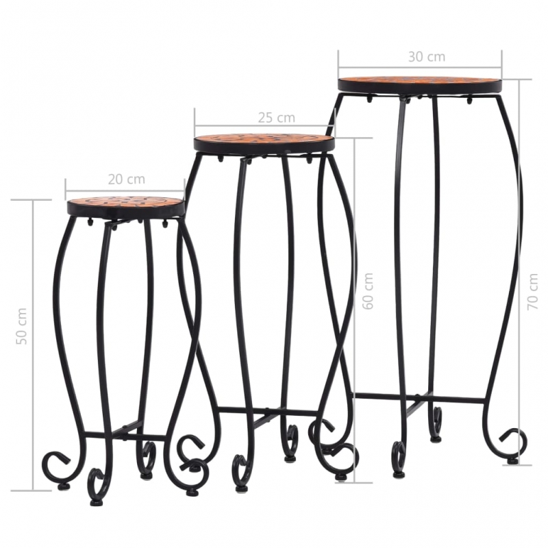 Der Tisch ist mit einer wetterfesten Mosaik-Tischplatte und einem eleganten Tischgestell ausgestattet. Er wird sicher zum Hingucker im Garten, auf dem Balkon, auf der Terrasse etc. Der Mosaik-Tisch kann auch als Pflanzentisch, Balkontisch oder Beistelltisch verwendet werden. Das Gestell aus Eisen trägt zur Stabilität bei, während die Tischplatte mit Keramik-Mosaik leicht zu reinigen ist. Es ist für eine lange Nutzungsdauer ausgelegt. Die Lieferung umfasst 3 Tische. Achtung: Dieses Produkt soll nicht draußen in der Kälte gelassen zu werden.