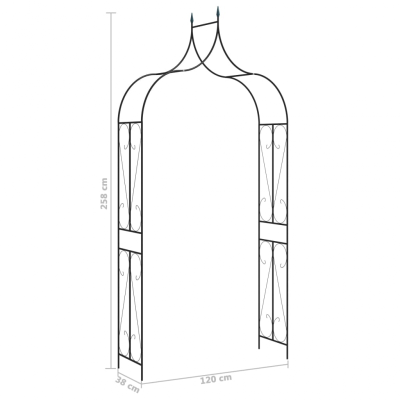 Dieser Gartenbogen ist eine elegante Ergänzung zu Ihrem Garten. Sie können ihn sowohl als Torbogen für Kletterpflanzen verwenden als auch mit Blumen oder Luftballons für Hochzeiten und andere besondere Anlässe dekorieren. Dieser Rosenbogen besteht aus Eisenrohren und ist mit witterungsbeständigem, schwarzem Epoxidharz beschichtet, wodurch er robust und pflegeleicht ist. Dieser Gartenbogen ist auch leicht zu montieren.