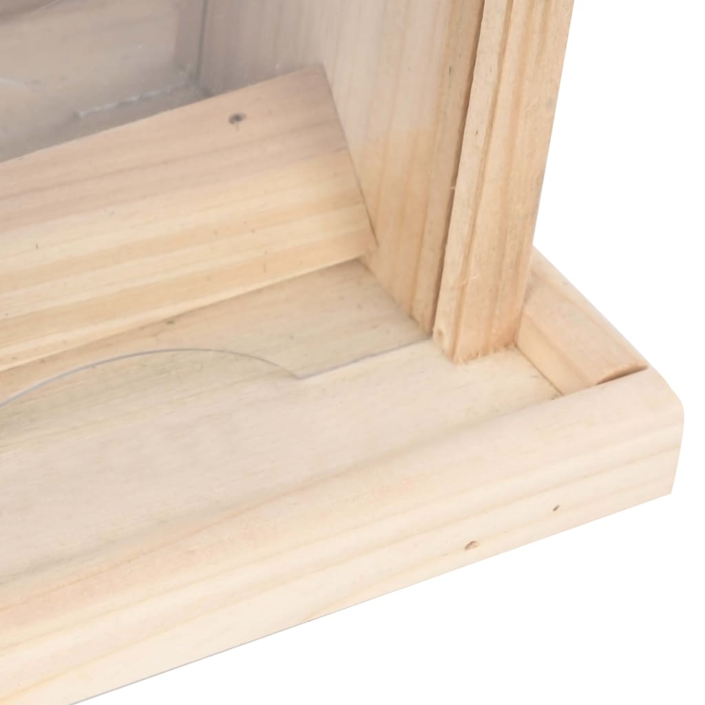 Dieses Holz-Vogelfutterhaus mit Ständer eignet sich ideal für Wildvögel, die darin hocken und eine Mahlzeit in Ihrem Garten genießen können. Aus Tannenholz gefertigt, ist das Vogelhaus stabil und langlebig genug, um allen Wetterbedingungen standzuhalten. Die PVC-Platte schützt das Futter vor Schmutz und Feuchtigkeit. Das Dach ist durch eine Schnur verbunden und kann abgenommen werden, damit Sie das Häuschen mit Vogelfutter leicht nachfüllen können. Dieses Garten-Vogelfutterhaus ist auch tragbar und lässt sich einfach umstellen. Diese Vogelfutterstation ergänzt Ihre bestehende Dekoration und bringt auch schöne Vögel in Ihren Garten.