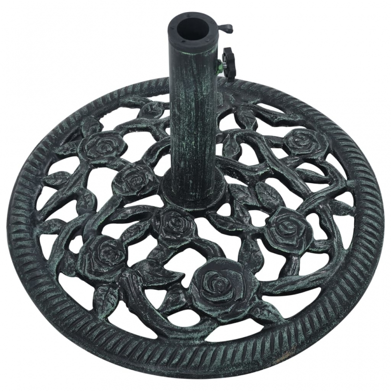 Dieser solide Schirmhalter dient als feste und stabile Basis für Ihren Schirm und hält ihn an seinem Platz. Das langlebige Gusseisenmaterial sorgt für eine ausgezeichnete Stabilität. Der mitgelieferte Adapter ist für Schirmstangen mit einem Durchmesser von 35, 38 oder 48 mm geeignet. Die detaillierte Schnörkelarbeit und das charmante Blumenmuster setzen einen stilvollen Akzent in jedem Garten oder Außenbereich.
