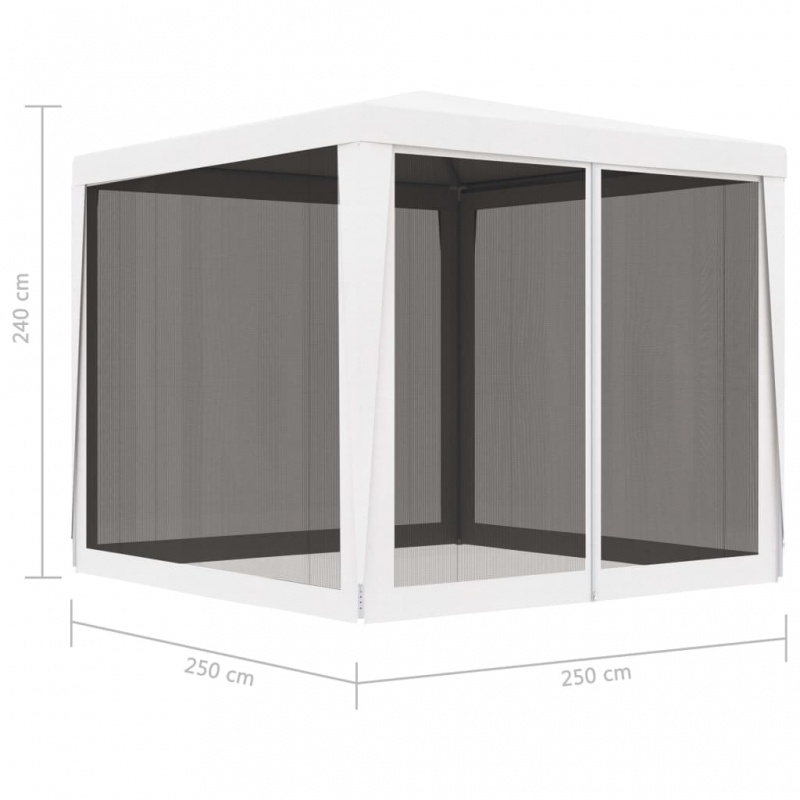 Das Partyzelt mit Seitenwänden aus Netzgewebe ist ideal für alle, die freie Sicht haben möchten, ohne bei Outdoor-Aktivitäten von Insekten gestört zu werden. Dieses Partyzelt ist ideal für eine Vielzahl von Outdoor-Veranstaltungen wie Hochzeiten, Partys, Grillpartys, Festivals, usw. Hergestellt aus strapazierfähigem Eisen, ist dieses Partyzelt extrem langlebig. Die Dachabdeckung ist aus hochwertigem PE gefertigt und somit wasser- und UV-beständig. Das Zelt hat sechs Netz-Seitenwände, die Sie vor lästigen Insekten schützen. Und eine der Seitenwände hat einen Eingang mit Reißverschluss für einen einfachen Zugang. Darüber hinaus ist das Partyzelt mit dem mitgelieferten Montagezubehör einfach zu installieren.