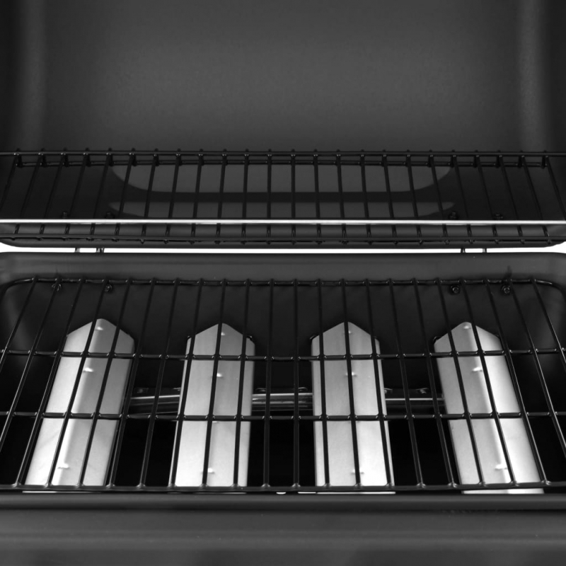 Dieser Gasgrill verfügt über 4 Flammen, was ihn zu einer idealen Wahl für ein Festmahl im Freien mit Familie und Freunden macht. Er verwandelt dich in einen echten Grillmeister und deinen Hinterhof in eine zweite Küche! Der Gasgrill zeichnet sich durch ein stilvolles und praktisches Design aus. Er verfügt über eine große Grillfläche und eine robuste Haube mit eingebautem Thermometer, das die Grilltemperatur genau anzeigt. Die seitlichen Ablagen bieten zusätzlichen Platz für die Zubereitung von Saucen und Lieblingsbeilagen. Im Lieferumfang ist auch eine abnehmbare Fettauffangwanne enthalten, die sich ganz einfach reinigen lässt. Aus strapazierfähigen Materialien gefertigt, ist der Grill auf eine lange Lebensdauer ausgelegt. Die untere Ablage bietet reichlich Stauraum für Kochgeschirr und Utensilien. Dank der 2 robusten Rollen lässt sich der Grill auch mühelos umher verschieben. Im Lieferumfang ist auch eine Grillhaube enthalten, die den Grill vor Regen und Staub schützt. Zum Anschluss des Grills an eine Gasflasche sind ein Gasschlauch und ein Druckregler erforderlich, die nicht im Lieferumfang enthalten sind.