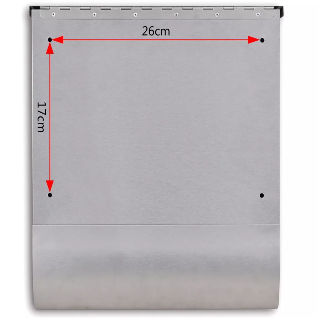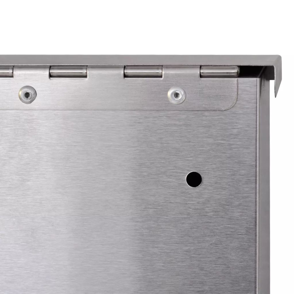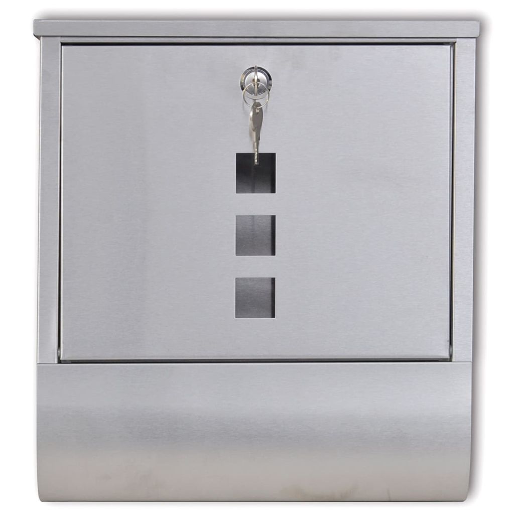 Dieser elegante, moderne Briefkasten ist aus Edelstahl gefertigt. Er verfügt über einen Briefschlitz, ein bequemes Schloss mit zwei Schlüsseln, einen Zeitungshalter und drei kleine Fenster, durch die Sie direkt sehen können, ob Sie Post bekommen haben.Unser qualitativ hochwertige Briefkasten ist eine hervorragende Wahl! Die Lieferung beinhaltet einen Briefkasten, zwei Schlüssel und Montage-Zubehör.
