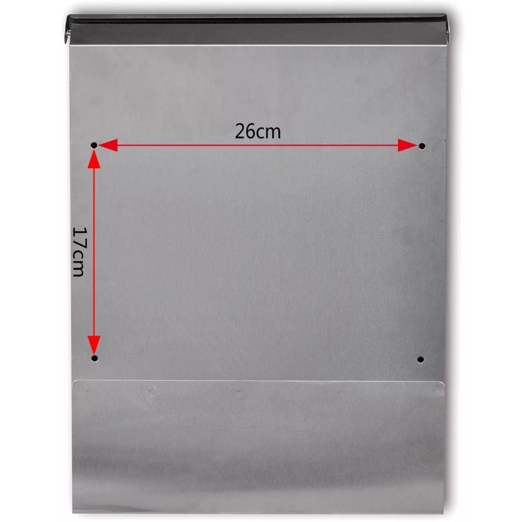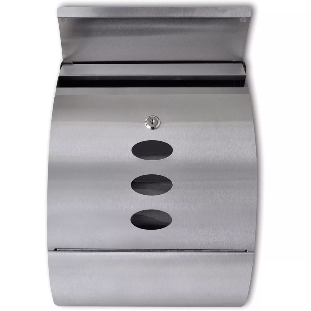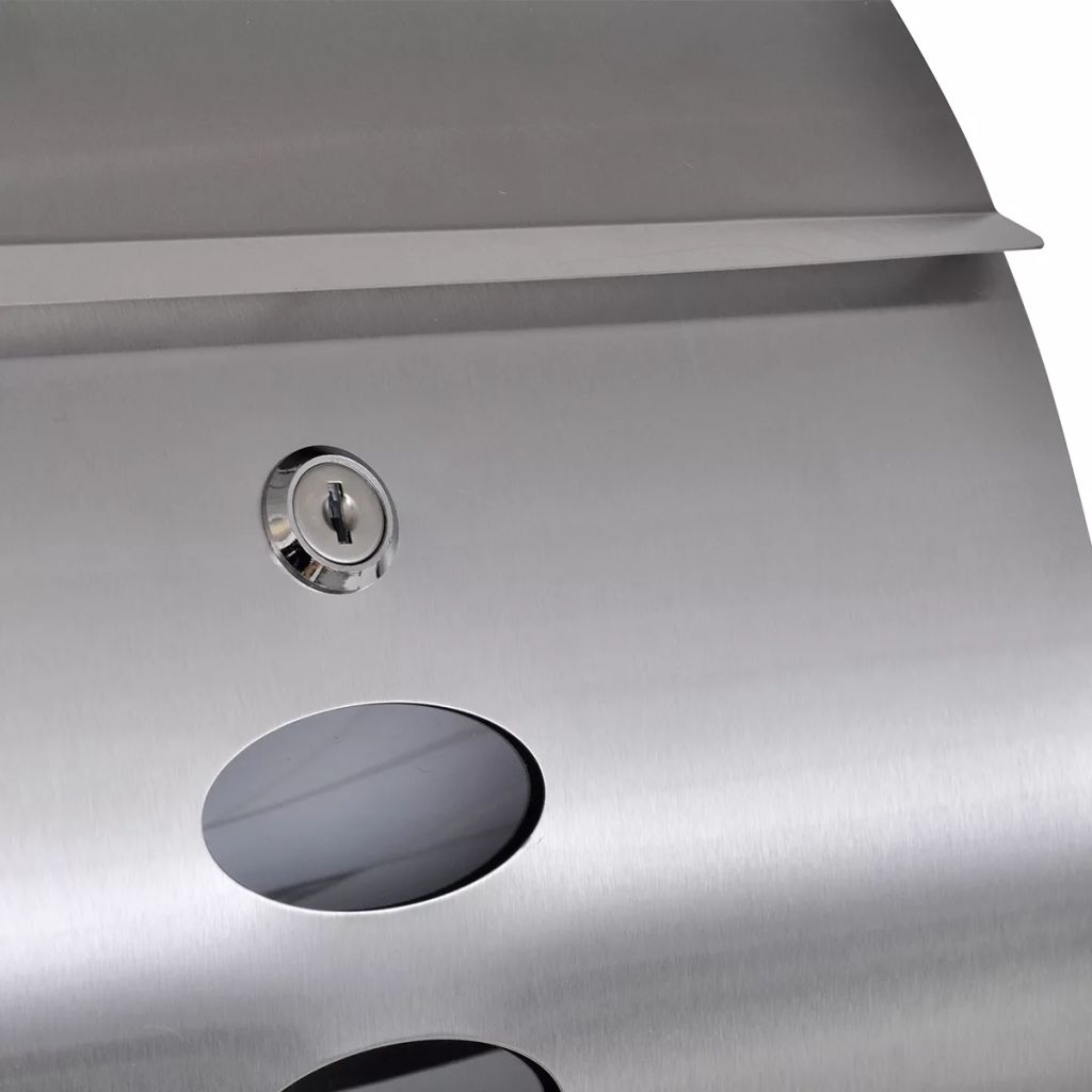 Dieser elegante, moderne Briefkasten ist aus Edelstahl gefertigt. Er verfügt über einen Briefschlitz, ein bequemes Schloss mit zwei Schlüsseln, einen Zeitungshalter und drei kleine Fenster, durch die Sie direkt sehen können, ob Sie Post bekommen haben. Unser qualitativ hochwertige Briefkasten ist eine hervorragende Wahl! Die Lieferung beinhaltet einen Briefkasten, zwei Schlüssel und Montage-Zubehör.