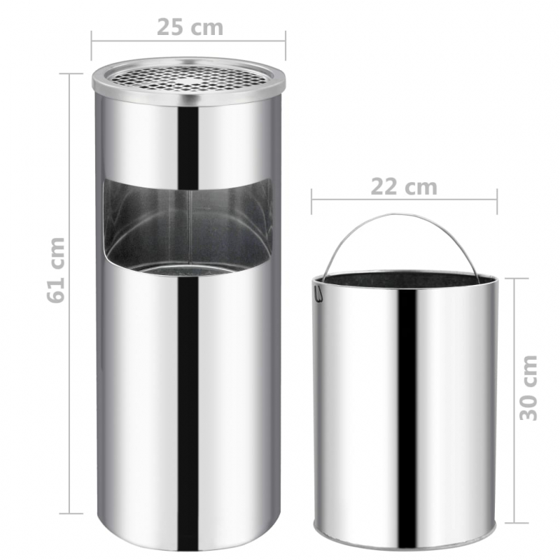 Dieser hochwertige Mülleimer zeichnet sich durch Edelstahl-Eleganz und ein Aschenbecher-Design aus und überzeugt nicht nur durch sein raffiniertes Design, sondern auch durch seine Funktionalität. Unser Mülleimer verfügt über ein großes Fassungsvermögen für Recyclingabfälle und ist mit einem Aschenbecher an der Oberseite versehen. Er lässt sich sowohl in Innen- als auch im Außenbereichen wie in Hotels, Restaurants, vor dem Haus, in Büros oder an anderen öffentlichen Orten verwenden. Hergestellt aus Edelstahl, ist er nicht nur robust, sondern verformt sich und rostet auch nicht leicht, was eine lange Lebensdauer gewährleistet. Mit den herausnehmbaren Einsätzen lässt sich der Aschenbecher einfach entleeren. Der innere Behälter kann mit großer Leichtigkeit herausgenommen werden, um gereinigt und gewaschen zu werden.