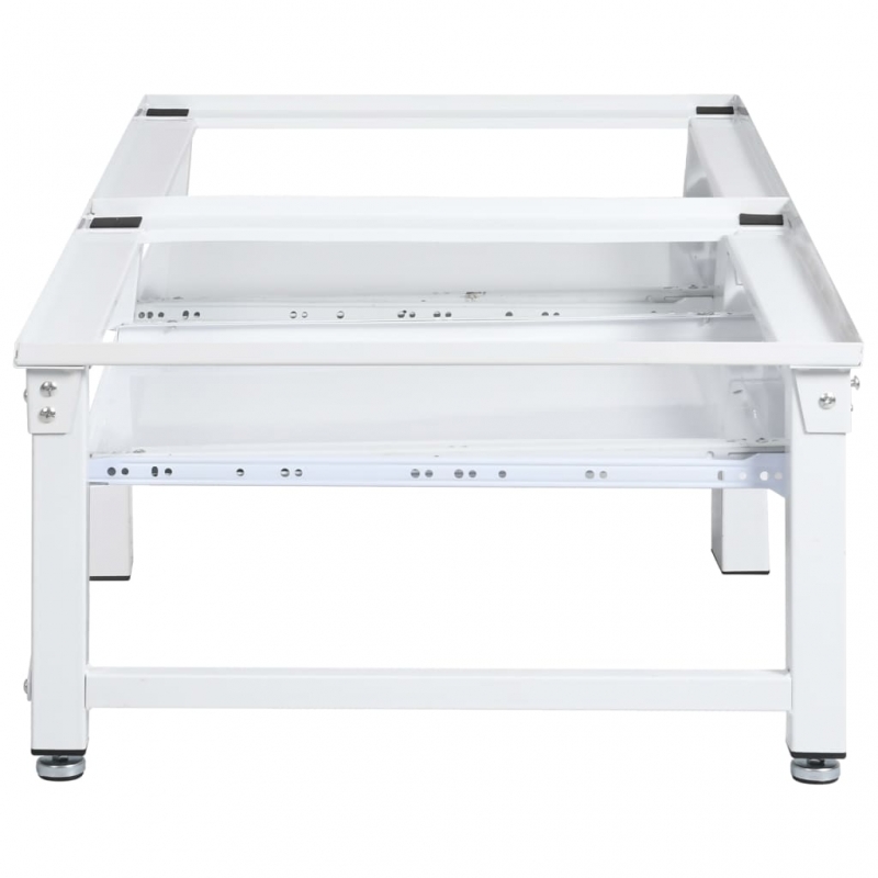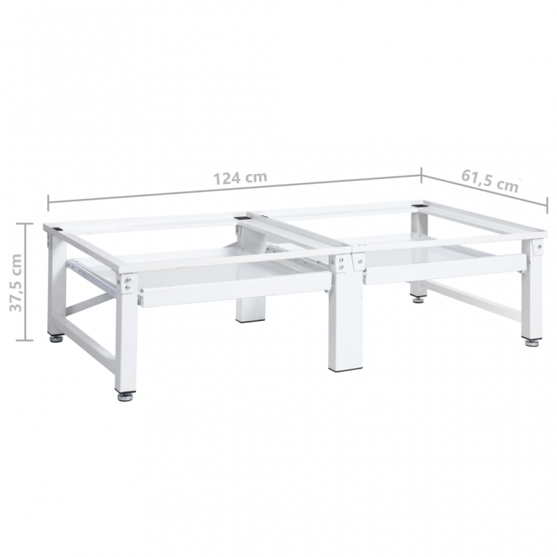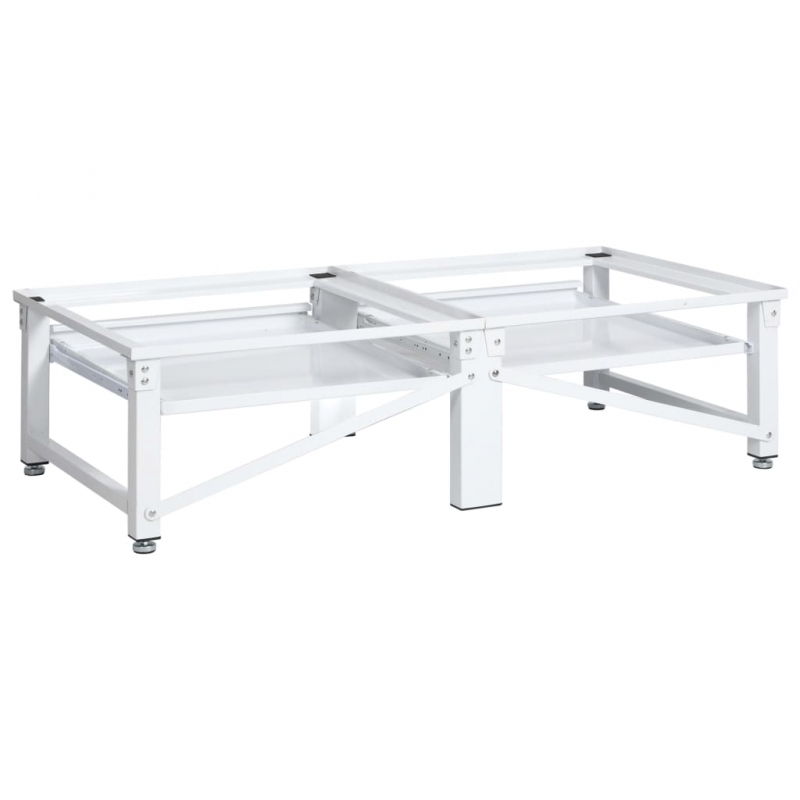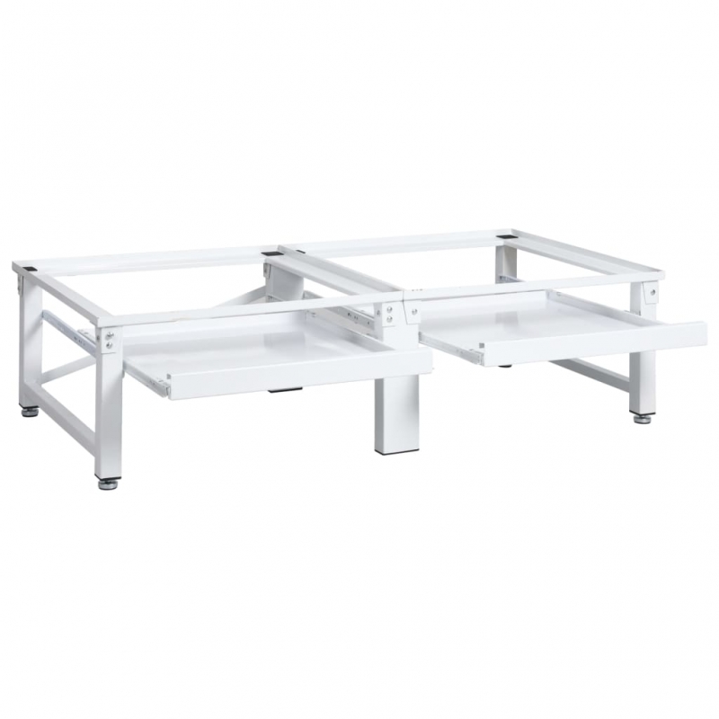 Dieser doppelte Sockel kann verwendet werden, um Wasch- und Trockenmaschinen vom Boden fernzuhalten und sie auf eine geeignete Arbeitshöhe zu heben, damit Sie sich nicht zu sehr bücken müssen, um Wäsche hineinzulegen oder herauszunehmen. Das doppelte Untergestell ist aus starkem Stahl gefertigt, was es sehr stabil macht. Dabei kann jeder Teil eine Waschmaschine oder einen Trockner mit einem Gewicht von bis zu 100 kg tragen. Dank rutschfester Polster stehen Wasch- und Trockenmaschinen stabil. Da die Füße höhenverstellbar sind, kann das Podest zum Ausgleich von Bodenunebenheiten angepasst werden. Es verfügt außerdem über zwei praktische Ausziehablagen, die für zusätzlichen Stauraum sorgen.