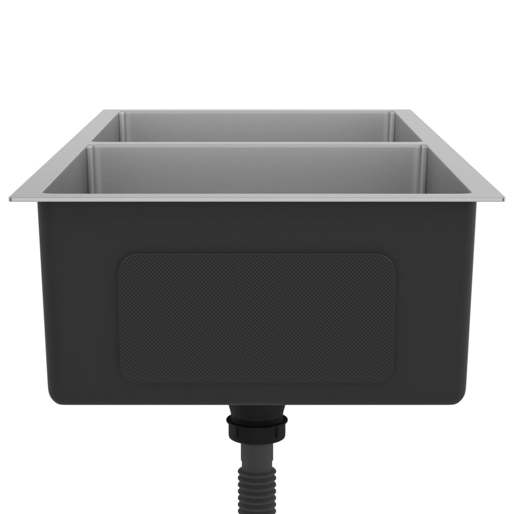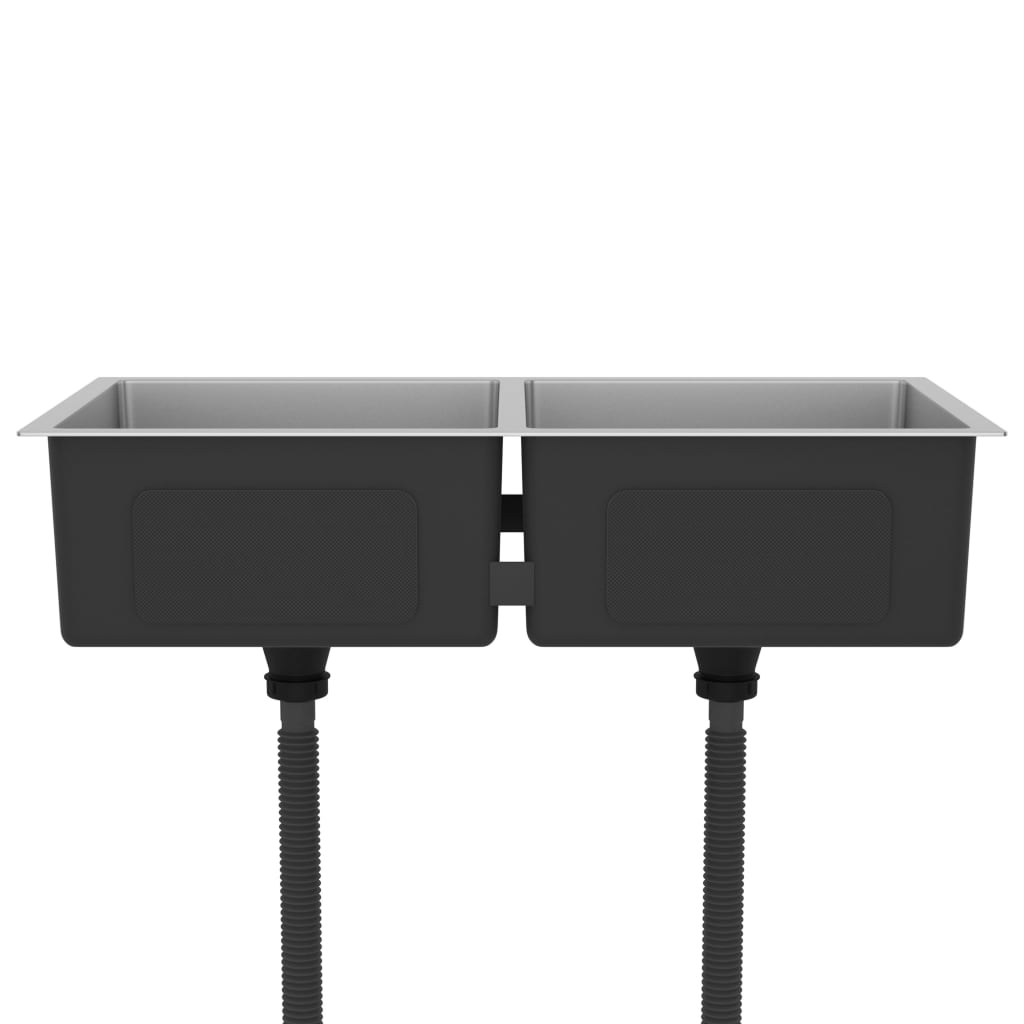 Genießen Sie die Vorteile dieser erstklassigen Einbauspüle mit schlichtem, zeitgenössischem Design. Die zwei Becken mit seidig glattem Satin-Finish überzeugen durch ihre Eleganz und Raffinesse und passen zu jeder Kücheneinrichtung! Dieses Spülbecken vereint das Beste aus Funktion und Design und besteht aus hochwertigem, handgefertigtem Edelstahl, der gegen Kondensation behandelt wurde. Es ist daher schimmelresistent, bleifrei und korrosionsbeständig. Dank der Pads zur Schalldämmung ist es auch schallisoliert. Darüber hinaus ermöglicht das Becken mit einzigartigem Wasserabfluss in X-Form einen schnellen Wasserfluss und verhindert so, das Wasser im Becken verbleibt. Das Spülbecken kann je nach Ihrem Belieben als Unterbau, Unterputz und Einbau montiert werden.