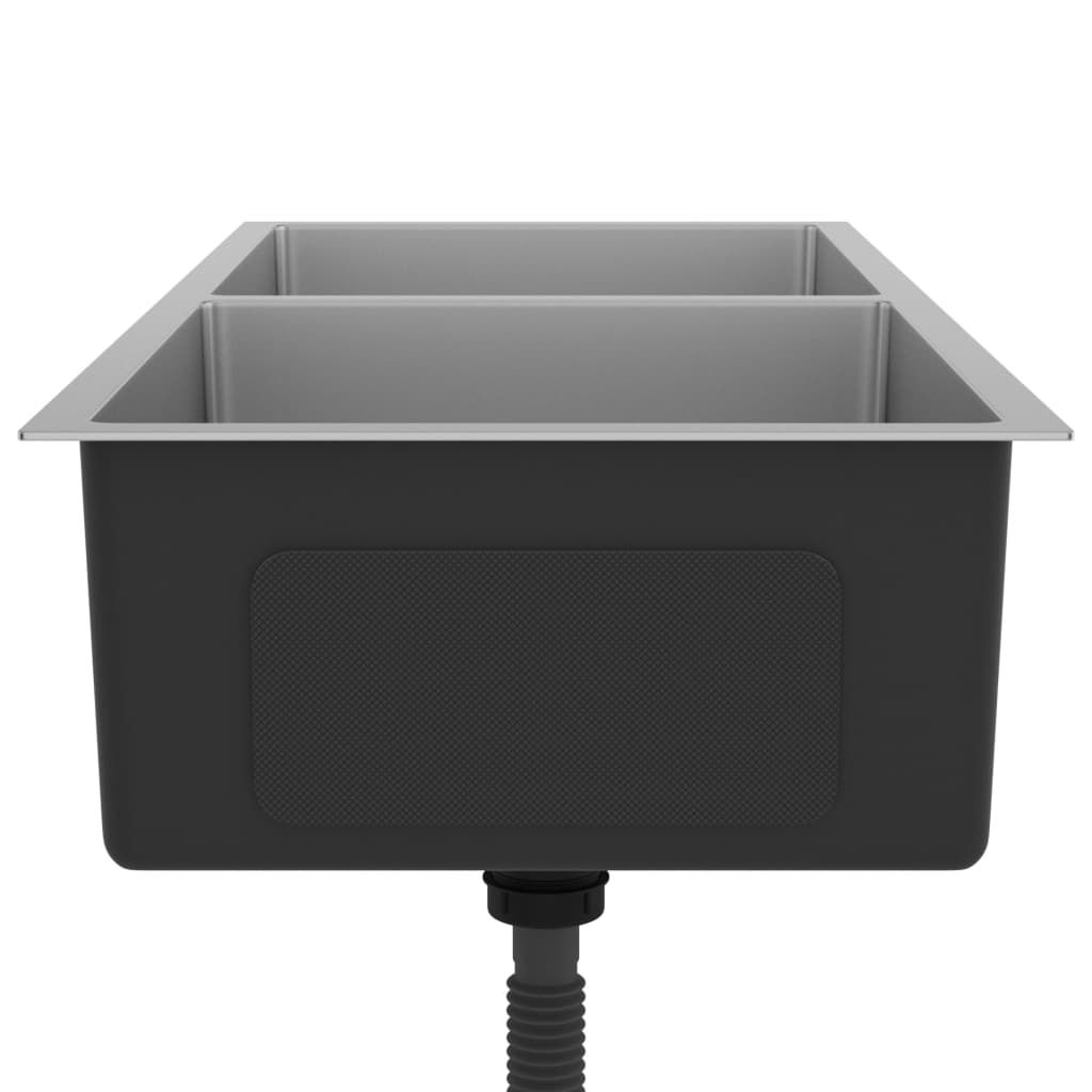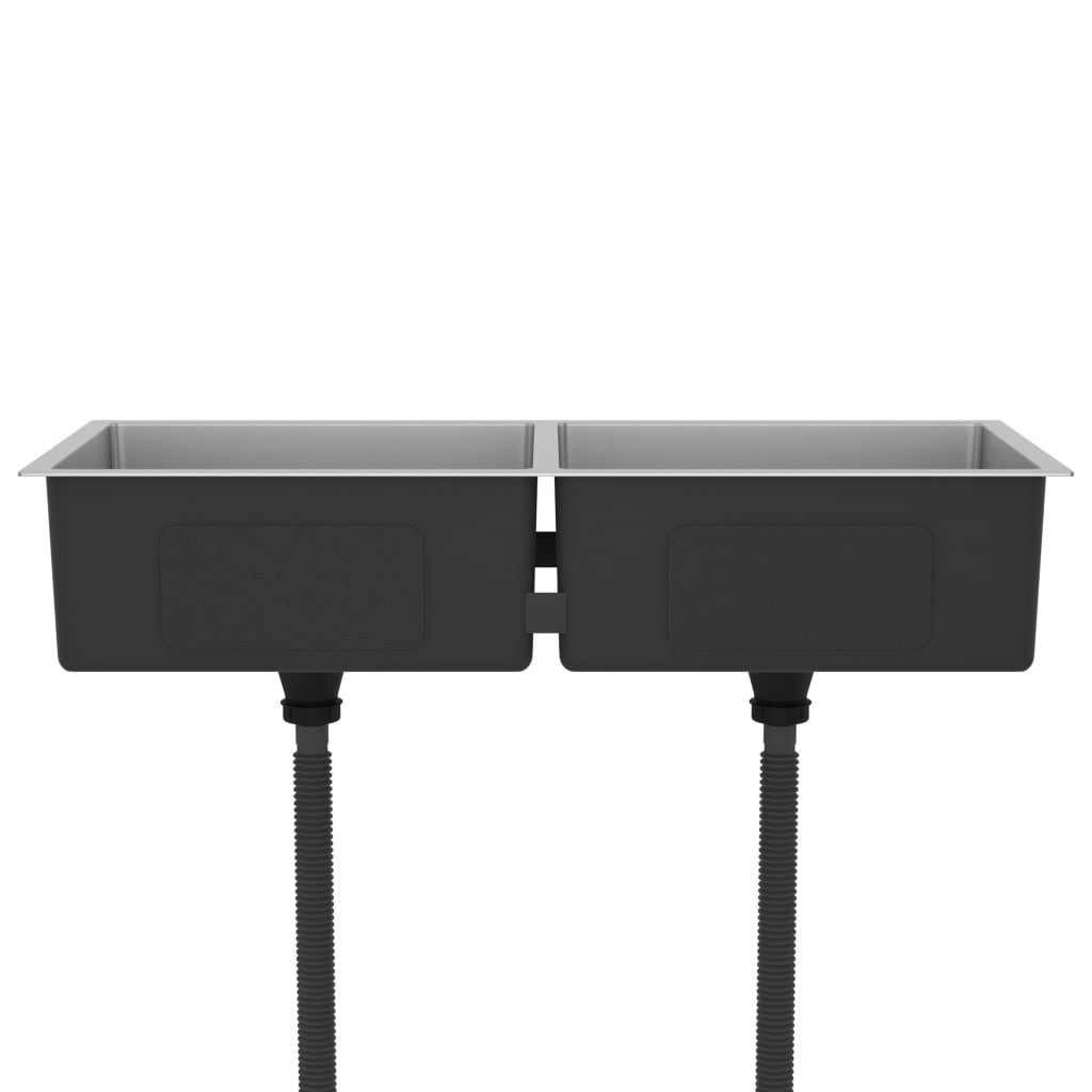 Genießen Sie die Vorteile dieser erstklassigen Einbauspüle mit schlichtem, zeitgenössischem Design. Die zwei Becken mit seidig glattem Satin-Finish überzeugen durch ihre Eleganz und Raffinesse und passen zu jeder Kücheneinrichtung! Dieses Spülbecken vereint das Beste aus Funktion und Design und besteht aus hochwertigem, handgefertigtem Edelstahl, der gegen Kondensation behandelt wurde. Es ist daher schimmelresistent, bleifrei und korrosionsbeständig. Dank der Pads zur Schalldämmung ist es auch schallisoliert. Darüber hinaus ermöglicht das Becken mit einzigartigem Wasserabfluss in X-Form einen schnellen Wasserfluss und verhindert so, das Wasser im Becken verbleibt. Das Spülbecken kann je nach Ihrem Belieben als Unterbau, Unterputz und Einbau montiert werden.