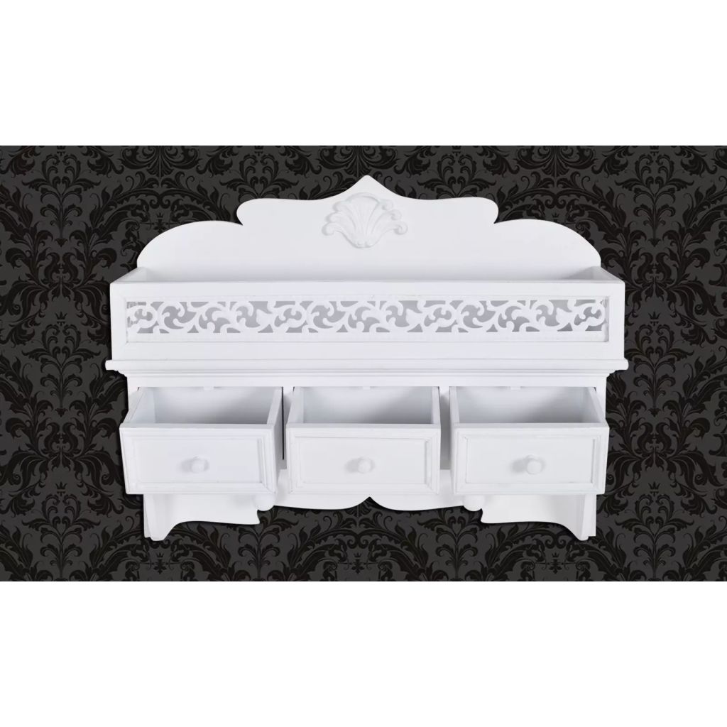 Diese klassisch elegante Wandgarderobe in Weiß mit 3 Schubladen ist die perfekte Aufbewahrungslösung für einen Flur, ein kleiner Schlafzimmer oder Gästezimmer. Mit zwei Haken an der Unterseite kann sie auch als Garderobenhaken verwendet werden.Die Garderobe besteht aus hochdichten Faserplatten (MDF), und die Schubladen gleiten reibungslos auf Nylon-Schienen mit eingebauten Sicherheitsanschlägen. Außerdem können diese zum Reinigen leicht herausgenommen werden. Unter den Schubladen befinden sich zwei robuste Kleiderhaken zum Aufhängen von Jacken, Hüten oder Handtaschen usw.Hinweis: Da diese Möbel aus Holz gefertigt und weiß lackiert sind, können sie kleine Makel aufweisen.