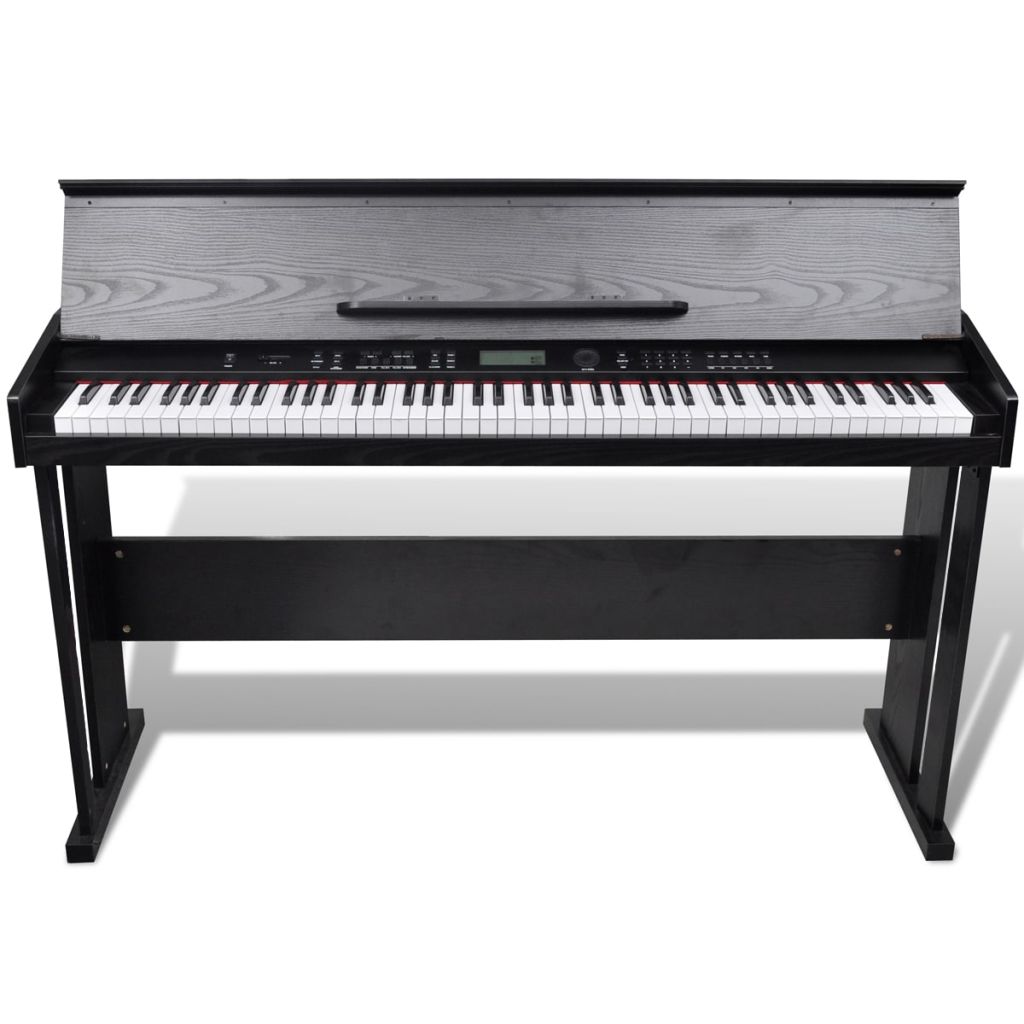Dieses Elektro-Klavier mit 88 Tasten und einer Notenablage erzeugt eine hervorragende Tonqualität und verfügt über viele Funktionen. Es ist einfach zu spielen und daher sowohl für Anfänger als auch für Fortgeschrittene bestens geeignet. Das hochwertige Material, aus dem das Klavier gefertigt worden ist, gewährleistet eine lange Nutzungsdauer. Das Musikinstrument erzeugt 128 verschiedene Sounds, 100 unterschiedliche Rhythmen und 50 Demosongs. Die Aufnahmefunktion kann verwendet werden, um selbstgespielte Lieder aufzunehmen. Dieses stilvolle elektronische Piano ist sehr einfach zu spielen. Jede Funktionstaste ist deutlich markiert, so dass Sie darauf problemlos zugreifen können. Während Sie Klavier spielen, können Sie das Musikbuch auf die Notenablage legen. Außerdem ist das Piano mit einer Kopfhörerbuchse ausgestattet, so dass Sie beim Spielen und Üben nicht von anderen Geräuschen gestört werden. Es ist nicht nur für Erwachsene geeignet, sondern auch ein ideales Geschenk für Kinder!