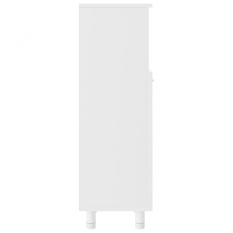 Mit diesem Badezimmerschrank kannst du zusätzlichen Stauraum im Ihrem Badezimmer schaffen. Die klaren Linien und das schlanke Design fügen sich perfekt in jedes Badezimmer ein. Dieser schicke Schrank besteht aus Holzwerkstoff und ist daher robust und stabil. Er verfügt über 3 Fächer und 1 Tür und bietet verschiedene Aufbewahrungsmöglichkeiten sowie zusätzlichen Platz für die Aufbewahrung von Badartikeln in deinem Badezimmer. An der Tür befindet sich ein Griff zum besseren Öffnen und Schließen. Der Schrank ist leicht mit einem feuchten Tuch zu reinigen.