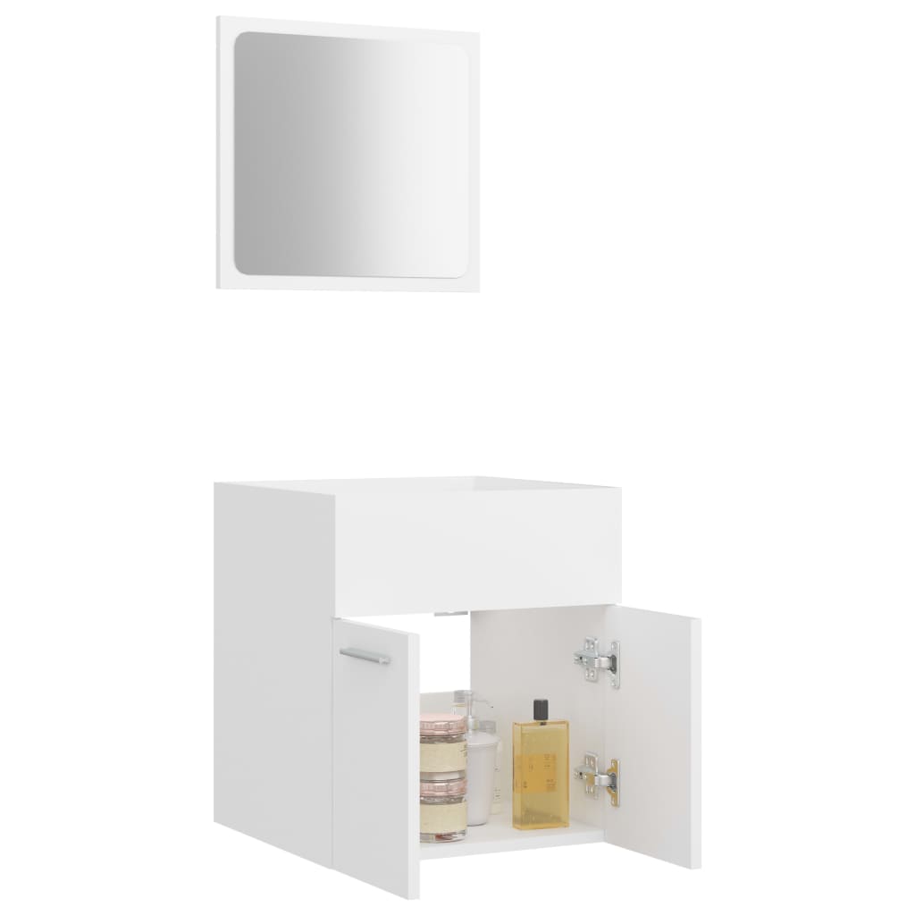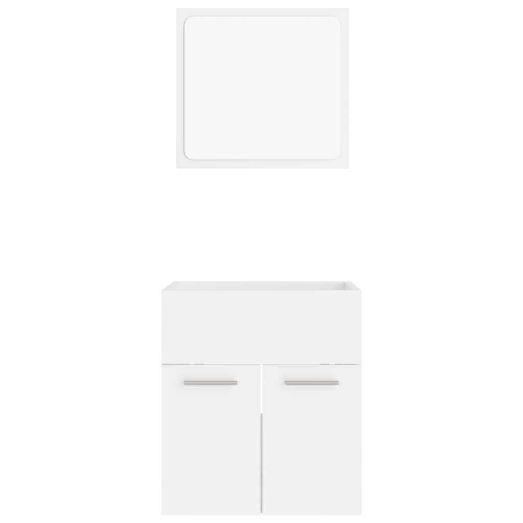 Mit diesem stilvollen Badmöbel-Set schaffen Sie zusätzlichen Stauraum in Ihrem Badezimmer. Die klaren Linien und das schlichte Design fügen sich perfekt in Ihr Bad ein. Das Möbelset mit Spiegel und Schrank besteht aus einem haltbaren und starken Holzwerkstoff. Dieser schicke Schrank verfügt über 1 Fach und 2 Türen und bietet ausreichend Stauraum in Ihrem Badezimmer. Auf dem Bad-Unterschrank kann ein Waschbecken eingebaut werden. Der Spiegel verleiht Ihrer Wohnkultur ein hervorragendes Aussehen. Darüber hinaus lässt sich dieses Badezimmermöbel-Set leicht mit einem feuchten Tuch reinigen. Bitte beachten: das Waschbecken ist nicht im Lieferumfang enthalten.