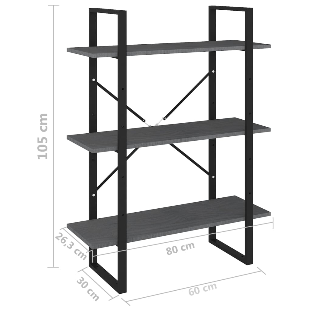 Bücherregal 3 Böden Grau 80x30x105 cm Massivholz Kiefer