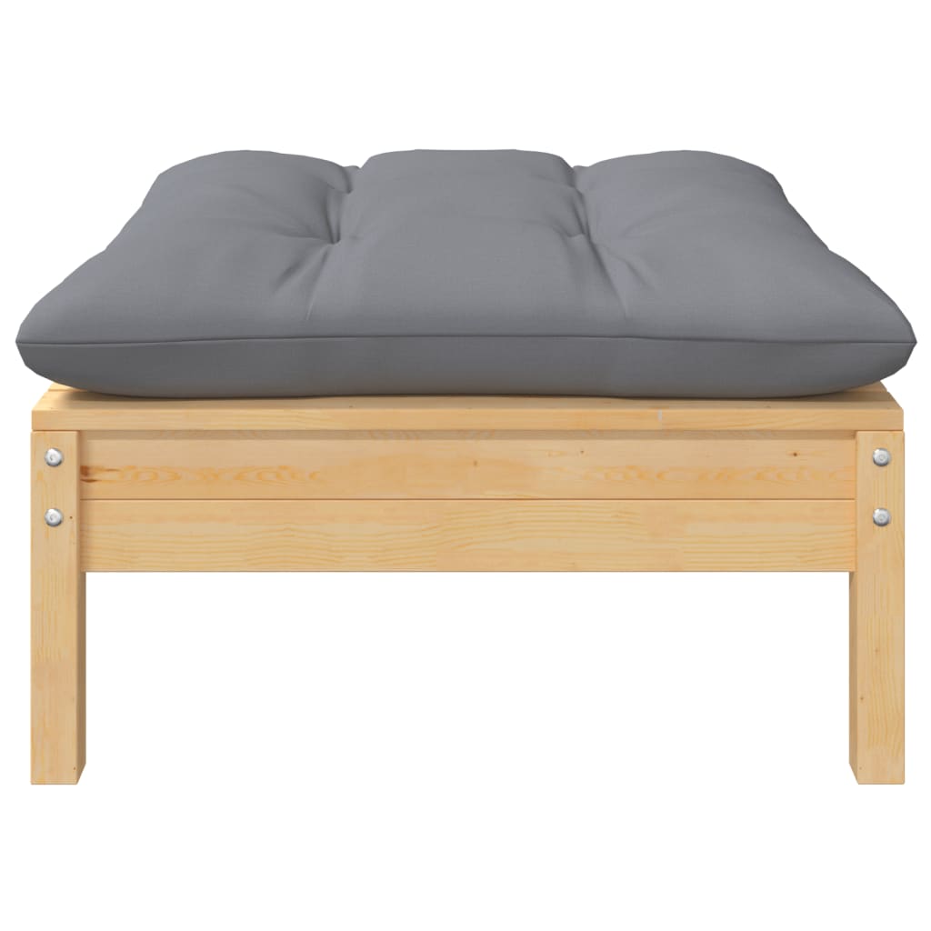 Gartenhocker mit Grauem Kissen Massivholz Kiefer