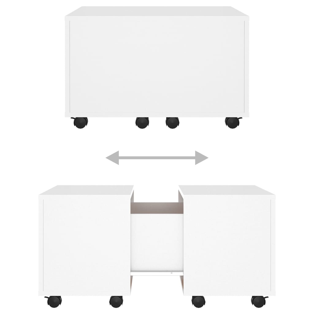 Verleihen Sie Ihrem Interieur einen Hauch von elegantem Charme mit diesem stilvollen Couchtisch! Der Couchtisch ist aus Holzwerkstoff gefertigt, was seine Robustheit, Langlebigkeit und Langlebigkeit gewährleistet. Dieser Akzenttisch kann von beiden Seiten ausgezogen werden und bietet viel Platz, um Ihre Zeitschriften, Bücher, Fernbedienungen sowie verschiedene andere kleine Gegenstände in Reichweite zu halten. Dank der Rollen lässt sich der Wohnzimmertisch flexibel umstellen. Außerdem ist der Tisch leicht mit einem feuchten Tuch zu reinigen.