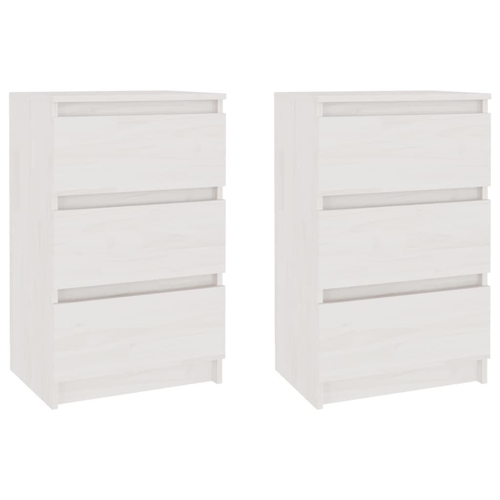 Nachtschränke 2 Stk. Weiß 40x29,5x64 cm Massivholz Kiefer