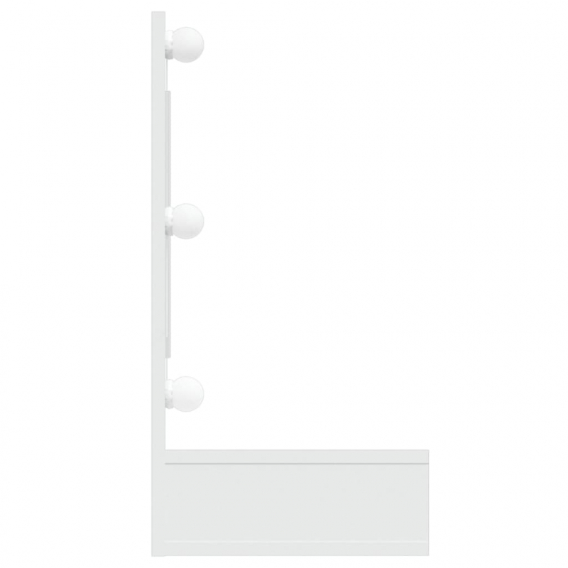 Mit diesem trendigen Spiegelschrank mit LED-Beleuchtung kannst du deine Kosmetika ordentlich und griffbereit aufbewahren! Langlebiges Material: Holzwerkstoff ist ein Material von außergewöhnlicher Qualität mit glatter Oberfläche, das sich durch Festigkeit, Stabilität und Feuchtigkeitsbeständigkeit auszeichnet.LED-Leuchten: Der Spiegelschrank verfügt auch über LED-Leuchten mit USB, die einfach von Warmweiß auf Kaltweiß umgeschaltet werden können. Dabei beleuchten die LED-Lampen rund um den Spiegel dein Gesicht optimal.Flexible Montage: Dieser LED-Spiegelschrank lässt sich auf deiner Kommode platzieren oder platzsparend an der Wand befestigen.Reichlich Stauraum: Dieser Wandschrank verfügt über 4 offene Fächer, die zusätzlichen Stauraum schaffen und eine zuverlässige Aufbewahrungslösung bieten. Hinweis:Jedes Produkt wird mit einer Montageanleitung in der Verpackung für eine einfache Montage geliefert.Schrauben und Dübel für die Wandbefestigung sind nicht enthalten. Suchen und verwenden Sie die für Ihre Wände geeigneten Schrauben und Dübel. Wenn Sie unsicher sind, suchen Sie professionelle Hilfe. Lesen und befolgen Sie jeden Schritt der Anleitung sorgfältig.