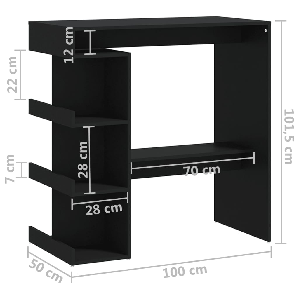 Bartisch mit Regal Schwarz 100x50x101,5 cm Holzwerkstoff