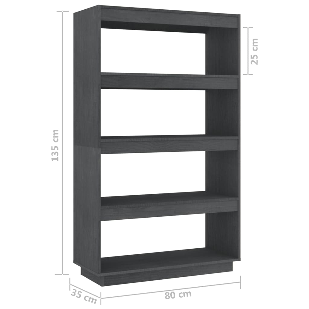 Bücherregal/Raumteiler Grau 80x35x135 cm Massivholz Kiefer