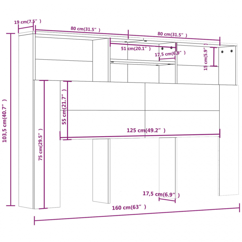 Bett-Kopfteil mit Ablagen Weiß 160x19x103,5 cm