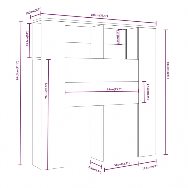 Kopfteil mit Ablagen Schwarz 100x18,5x104,5 cm