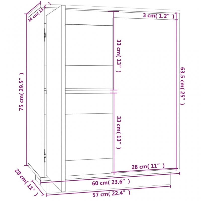 Dieses Sideboard aus Holz verleiht Ihrem Wohnraum einen Hauch Eleganz. Dieser Beistellschrank besteht aus massivem Kiefernholz, das Langlebigkeit und Stabilität gewährleistet. Der Schrank mit Türen bietet reichlich Stauraum für Bücher, Multimedia-Geräte und andere Sachen. Auf der robusten Oberplatte lassen sich Dekoartikel, Bilderrahmen oder Topfpflanzen zur Schau stellen.