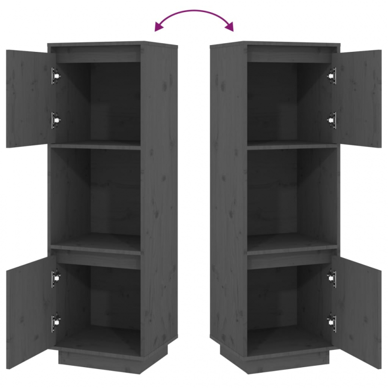 Highboard Grau 38x35x117 cm Massivholz Kiefer