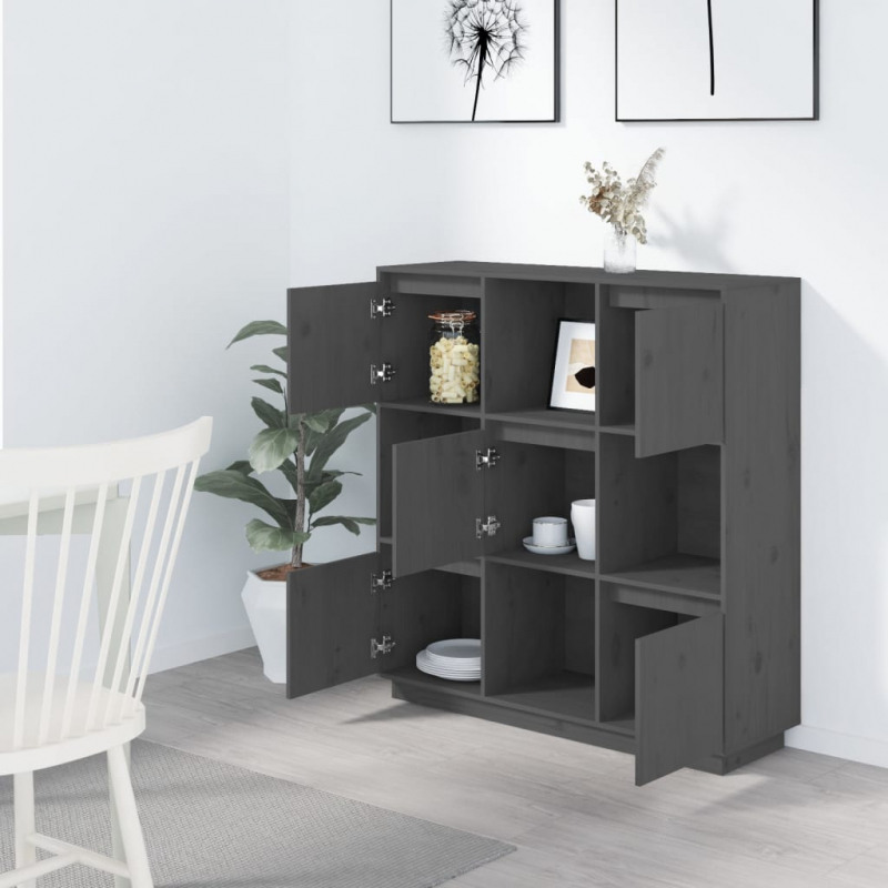 Bringe einen Hauch von einzigartigem Charme in deine Einrichtung mit diesem klassischen Highboard aus Holz! Massives Kiefernholz: Massives Kiefernholz ist ein wunderschönes Naturmaterial. Kiefernholz weist eine gerade Maserung auf und die Aststellen verleihen dem Material seine charakteristische, rustikale Optik.Reichlich Stauraum: Mit 5 Türen versehen, bietet der Schrank reichlich Stauraum, um verschiedene Alltagssachen ordentlich und griffbereit aufzubewahren.Modernes Design: Dieses Highboard verleiht deinem Interieur eine moderne Note. Durch klare Linien, minimalistischen Look und modernes Design fügt er sich harmonisch in deine Inneneinrichtung ein. Achtung:Um ein Umkippen zu vermeiden, sollte dieses Produkt mit der mitgelieferten Wandhalterung gesichert werden.