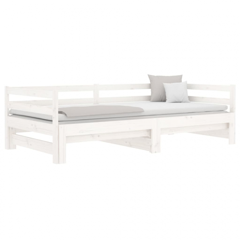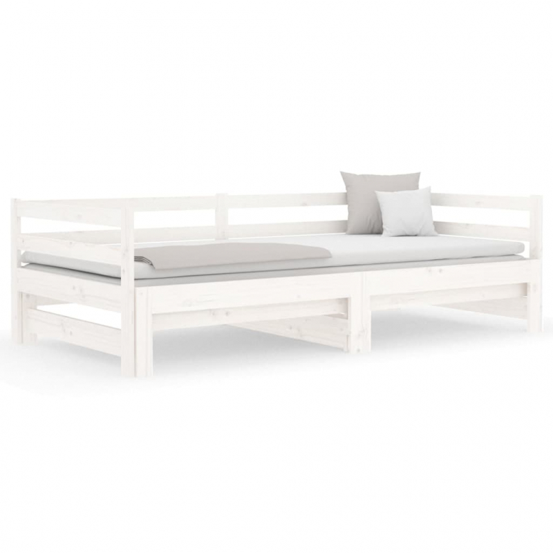 Dieses vielseitige Tagesbett aus Holz lässt sich als Bett in deinem Schlafzimmer einsetzen, kann aber auch als Sofa im Wohnzimmer dienen. Massives Kiefernholz: Massives Kiefernholz ist ein wunderschönes Naturmaterial. Kiefernholz weist eine gerade Maserung auf und die Aststellen verleihen dem Material seine charakteristische, rustikale Optik. Aus massivem Kiefernholz gefertigt, ist dieses Gästebett stabil und langlebig. Latten-Design: Der Lattenrost sorgt für eine bessere Luftzirkulation, damit die Matratze länger frisch bleibt, verbessert die Gewichtsverteilung und sorgt für Stabilität. Einfacher Gebrauch: Dieses Gästebett ermöglicht eine komfortable Nutzung, da es weder eine Ferderkernbox noch eine Basis erfordert. Stelle einfach die Matratze darüber und genieße einen erholsamen Schlaf oder eine komfortable Sitzposition! Ausziehbar: Dieses Tagesbett aus Holz kann tagsüber als Sofa und nachts als Bett verwendet werden, um Übernachtungsgästen einen gemütlichen Schlafplatz zu bieten und gleichzeitig Platz zu sparen. Hinweis:Die Lieferung beinhaltet nur einen Bettrahmen. Die Matratze ist nicht enthalten. In unserem Shop finden Sie auch passende Matratzen. Jedes Produkt wird mit einer Montageanleitung in der Verpackung für eine einfache Montage geliefert.
