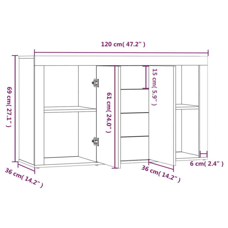 Dieses klassische Sideboard stellt sowohl eine dekorative als auch eine praktische Bereicherung für dein Zuhause dar. Robustes Material: Holzwerkstoff ist ein Material von außergewöhnlicher Qualität mit glatter Oberfläche, das sich durch Festigkeit, Stabilität und Feuchtigkeitsbeständigkeit auszeichnet.Viel Stauraum: Mit 2 Türen versehen, bietet der Beistellschrank reichlich Stauraum, um verschiedene wichtige Alltagssachen ordentlich und griffbereit aufzubewahren.Stabile Oberplatte: Die Oberplatte des Schranks eignet sich hervorragend, um deine Lieblings-Dekoartikel zur Schau zu stellen.Stilvolles Design: Dieses Sideboard weist ein stilvolles Design auf und bringt dadurch einen Hauch von einzigartigem Charme in deine Inneneinrichtung! Achtung:Um das Umkippen zu verhindern, muss dieses Produkt mit der mitgelieferten Wandhalterung gesichert werden.